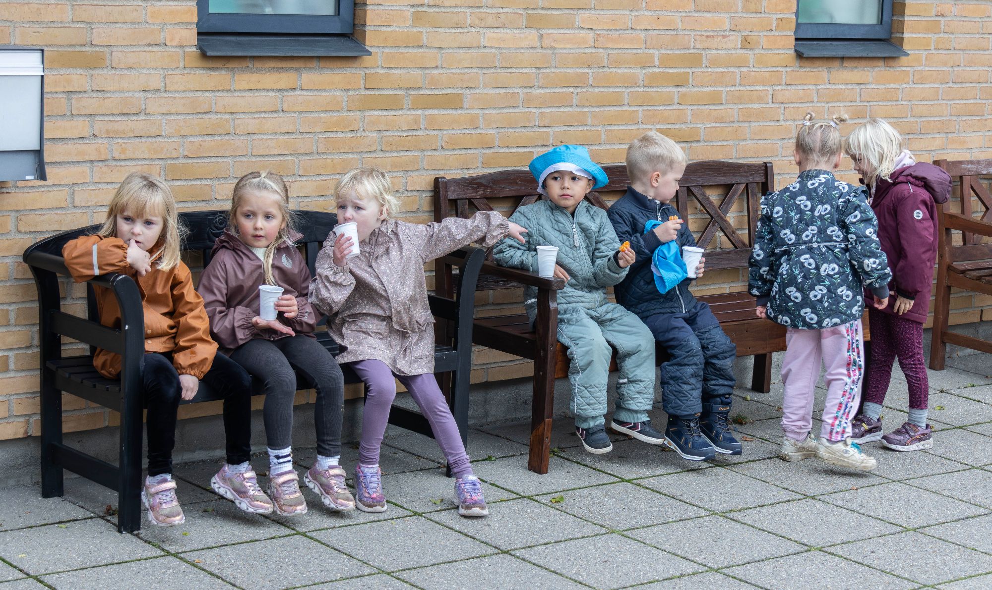Det hele startede klokken 9.30, og det holdt heldigvis tørvejr i efterårsblæsten. Seancen varede knap en times tid, og børnene, alt efter alder, tog stille og roligt afsted igen, når der ikke var mere krudt i batterierne.