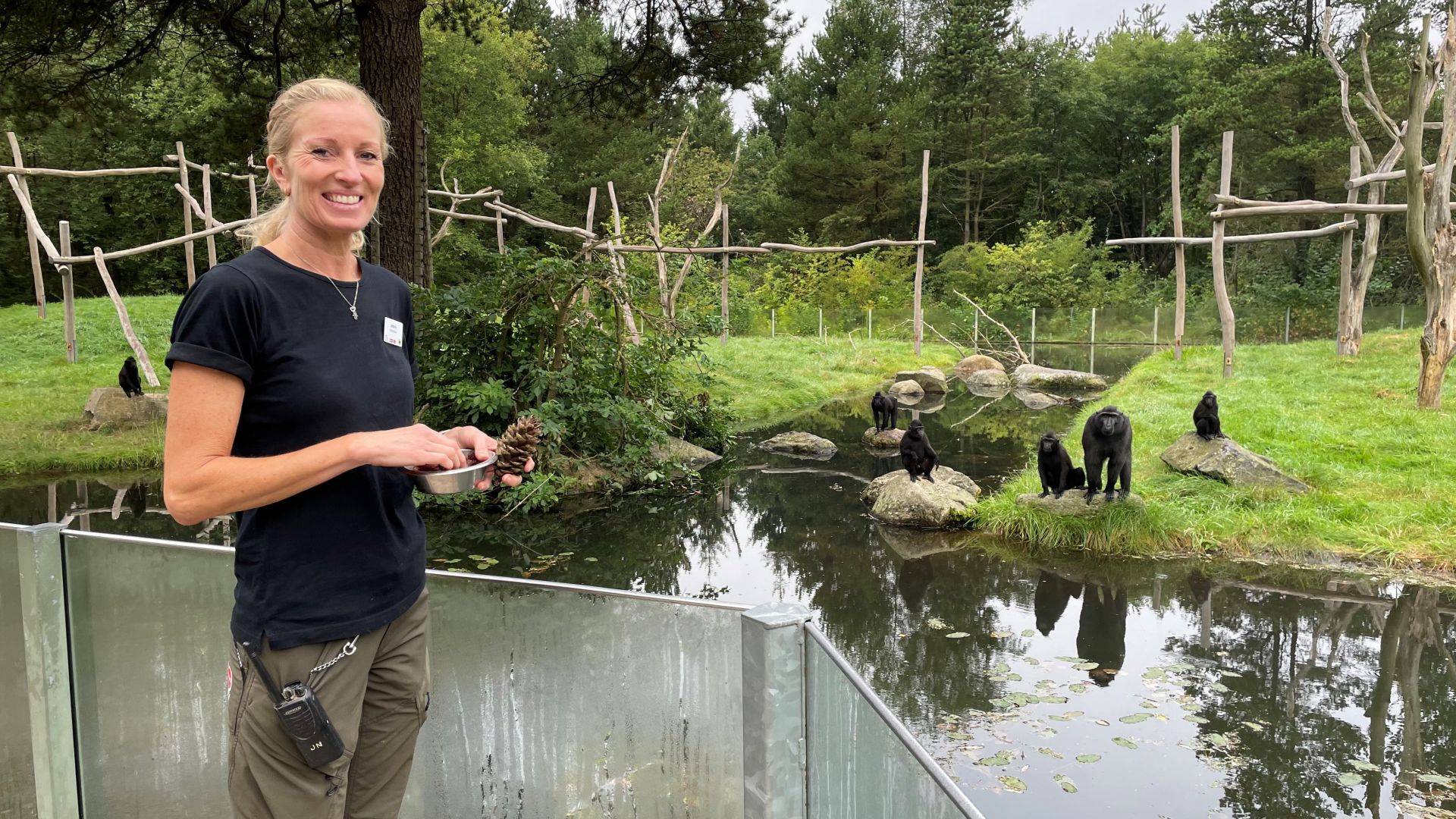 Efter chimpanserne forlod parken, blev anlægget ombygget, så sulawesimakakker kunne rykke ind, og dem er "abe-pigen" også utrolig glad for at passe.