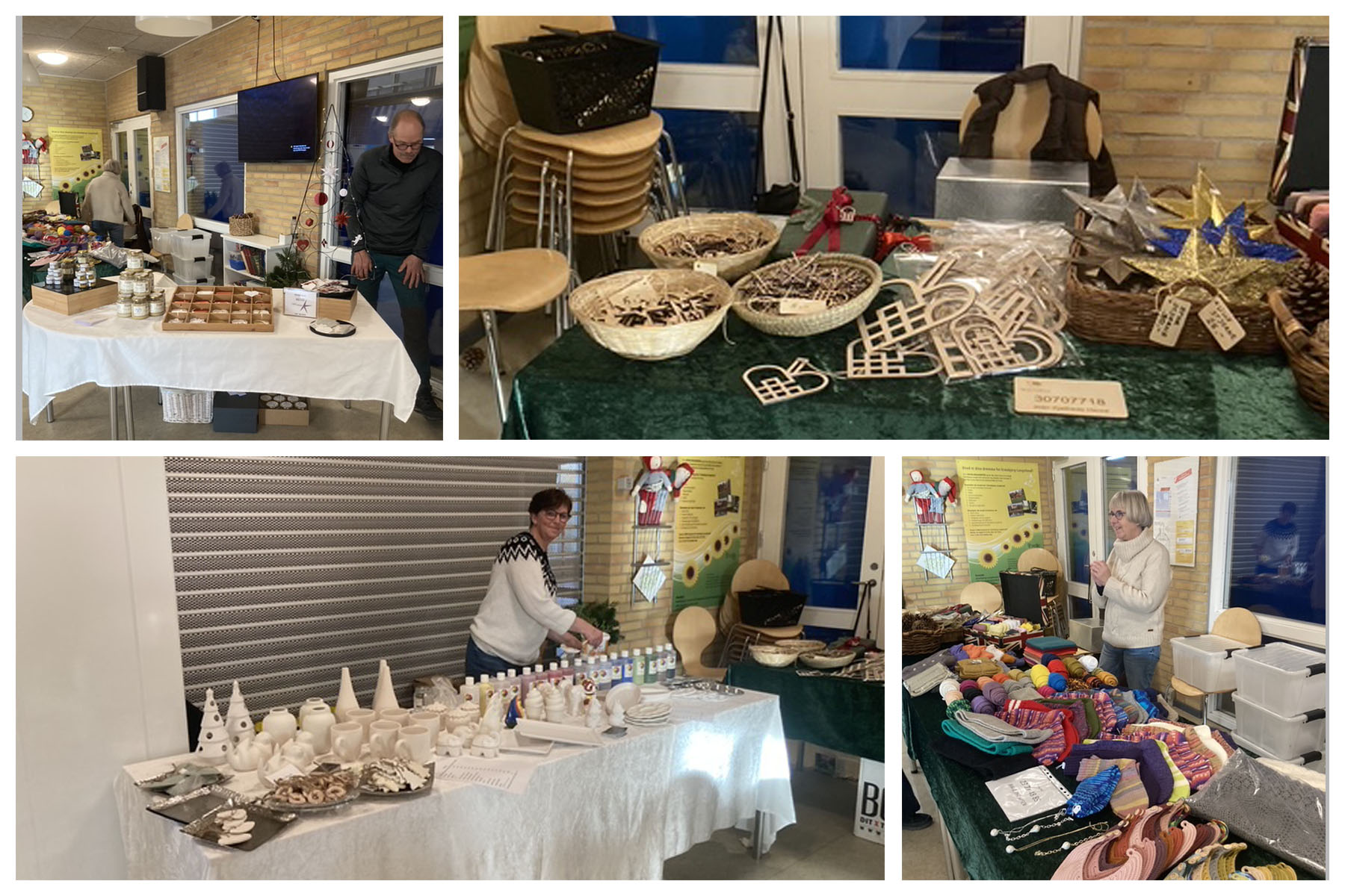 -I år prøvede vi noget nyt og havde arrangeret lokale håndværkere til at komme forbi med spændende juleboder. Der blev solgt strik, lækre halstørklæder, lune sokker, honning, papirkunst, trækunst og keramik. Igen i år var der hyggelige nisseboder, hvor børnene kunne lave dekorationer og skrive breve og ønskesedler til julemanden.
