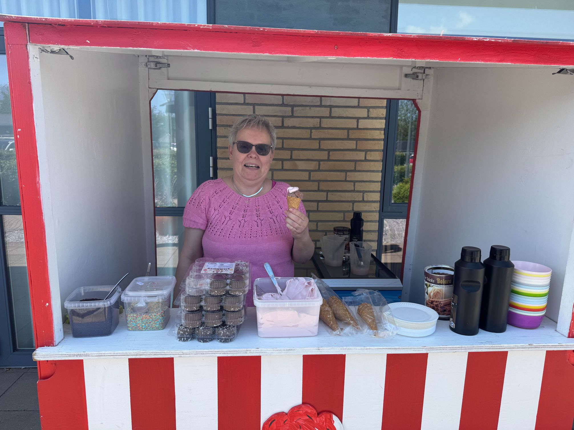 Snakken gik lystigt i det fine sommervejr, og den unge dame i isboden havde nok at se til. Det var dansksommerhygge, når det er bedst.