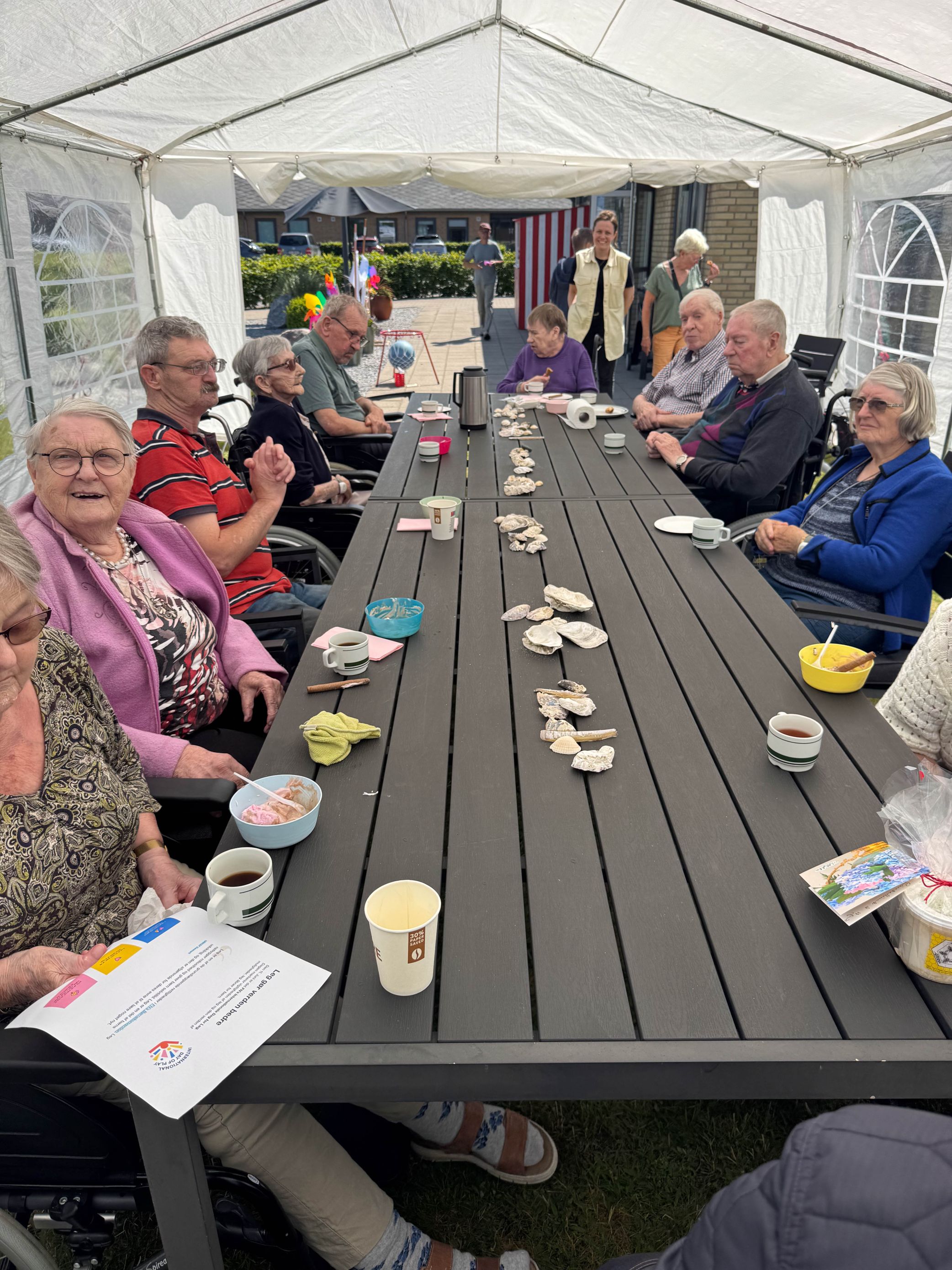 Så er der pludselig bud efter hende, da en beboer gerne lige vil lave en gang snobrød som i gamle dage, og da nogle pårørende dukker op med en flok friske børnebørn, kommer der for alvor liv i kludene (og isboden) – og det var tydeligvis noget, som beboerne satte pris på her i deres hyggelige interne sommerhusferie.