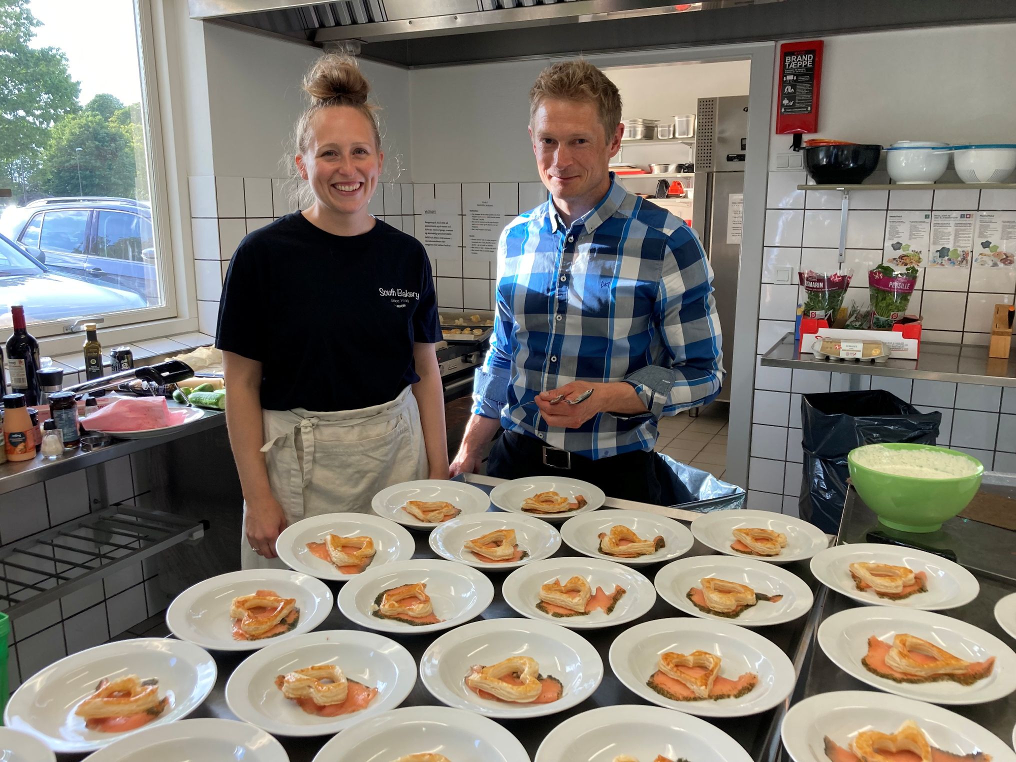 Foto: Det var Stine og Michael Hegelund Ingemann Thomsen, der diskede op med en masse lækre retter mad, da Lindeballe Forsamlingshus for en aften blev til Lindeballe Kro. Foto: Else Grunnet