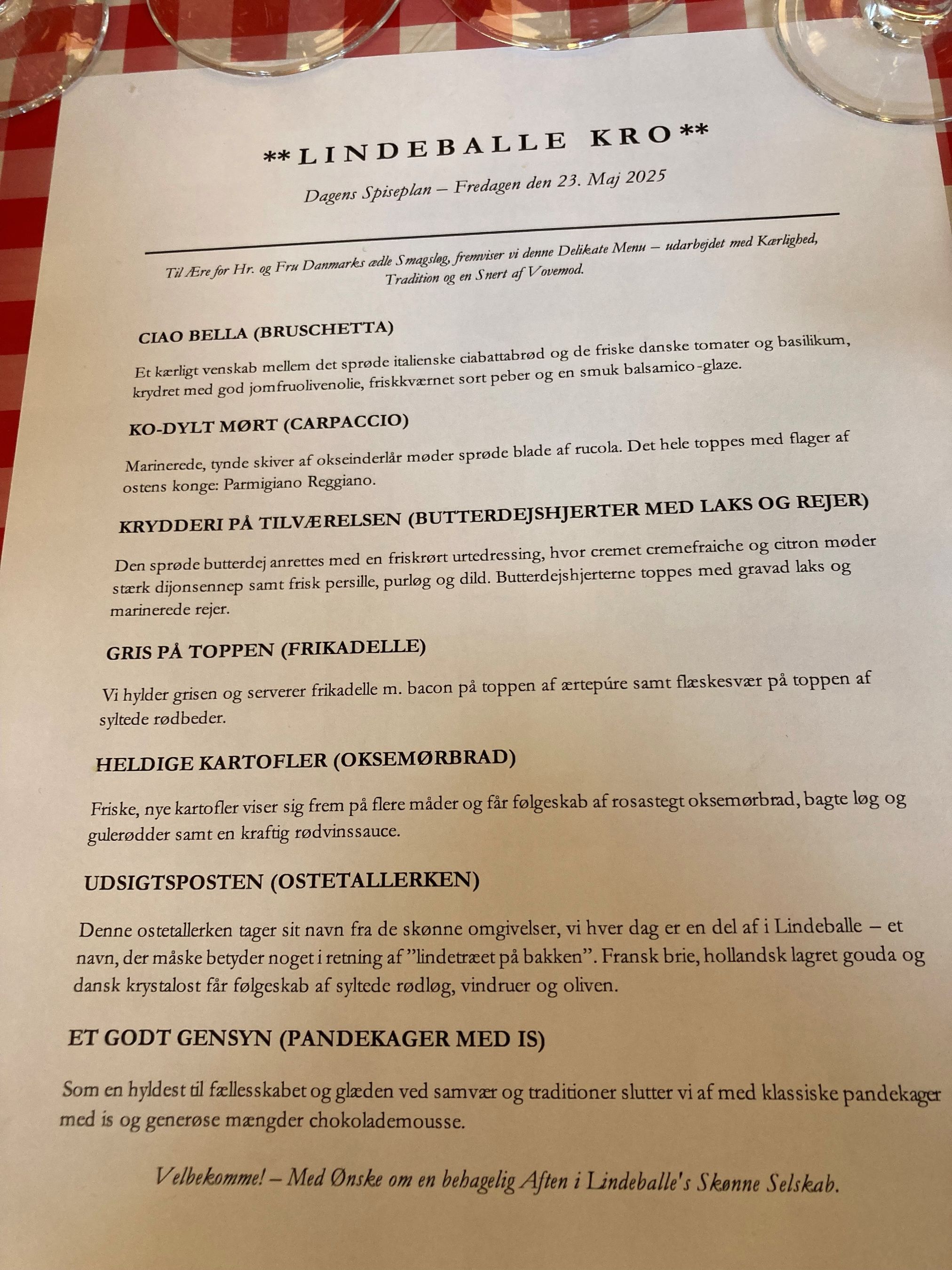 Her har vi så det spændende menukort, da Lindeballe Kro fik comeback. Foto: Else Grunnet