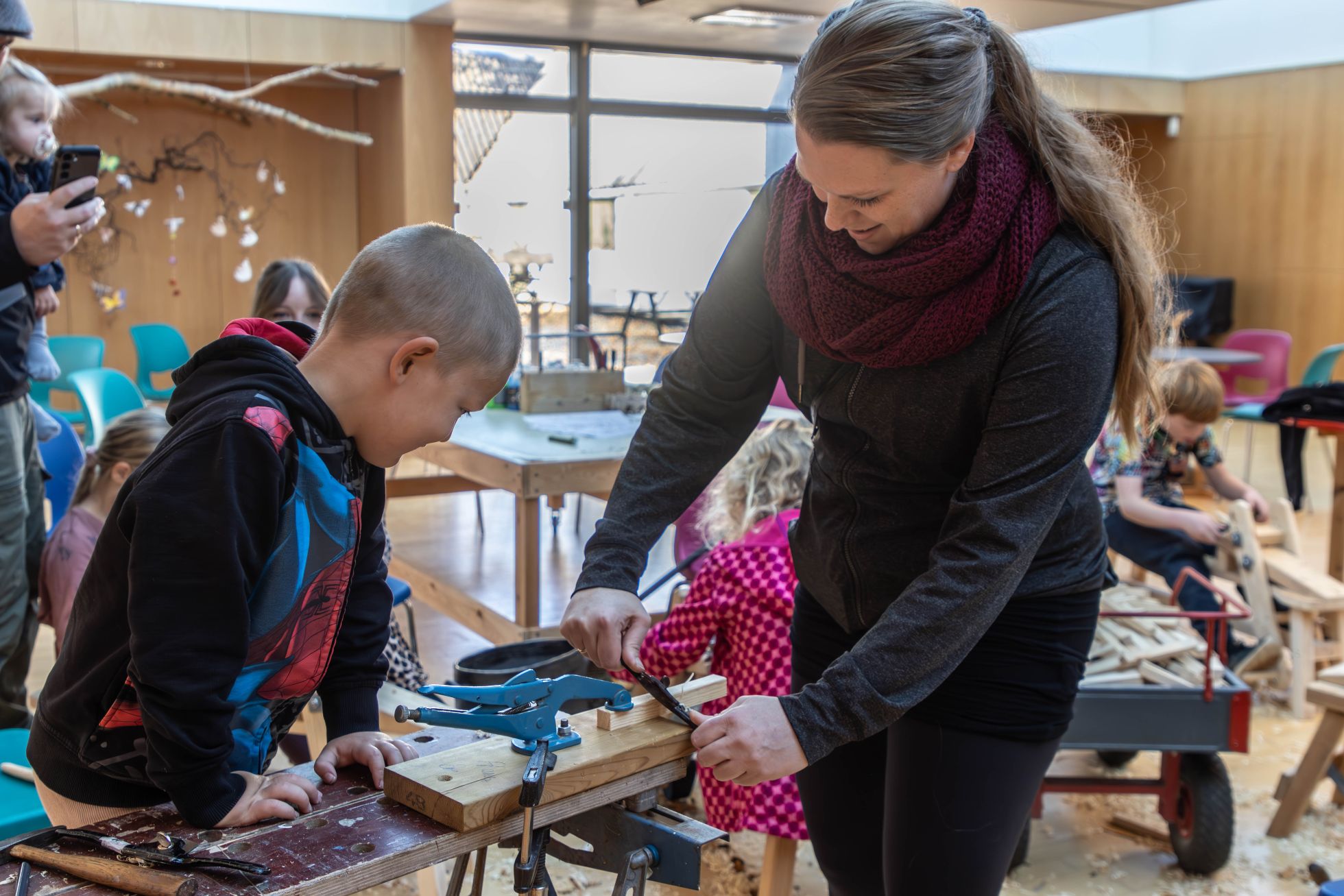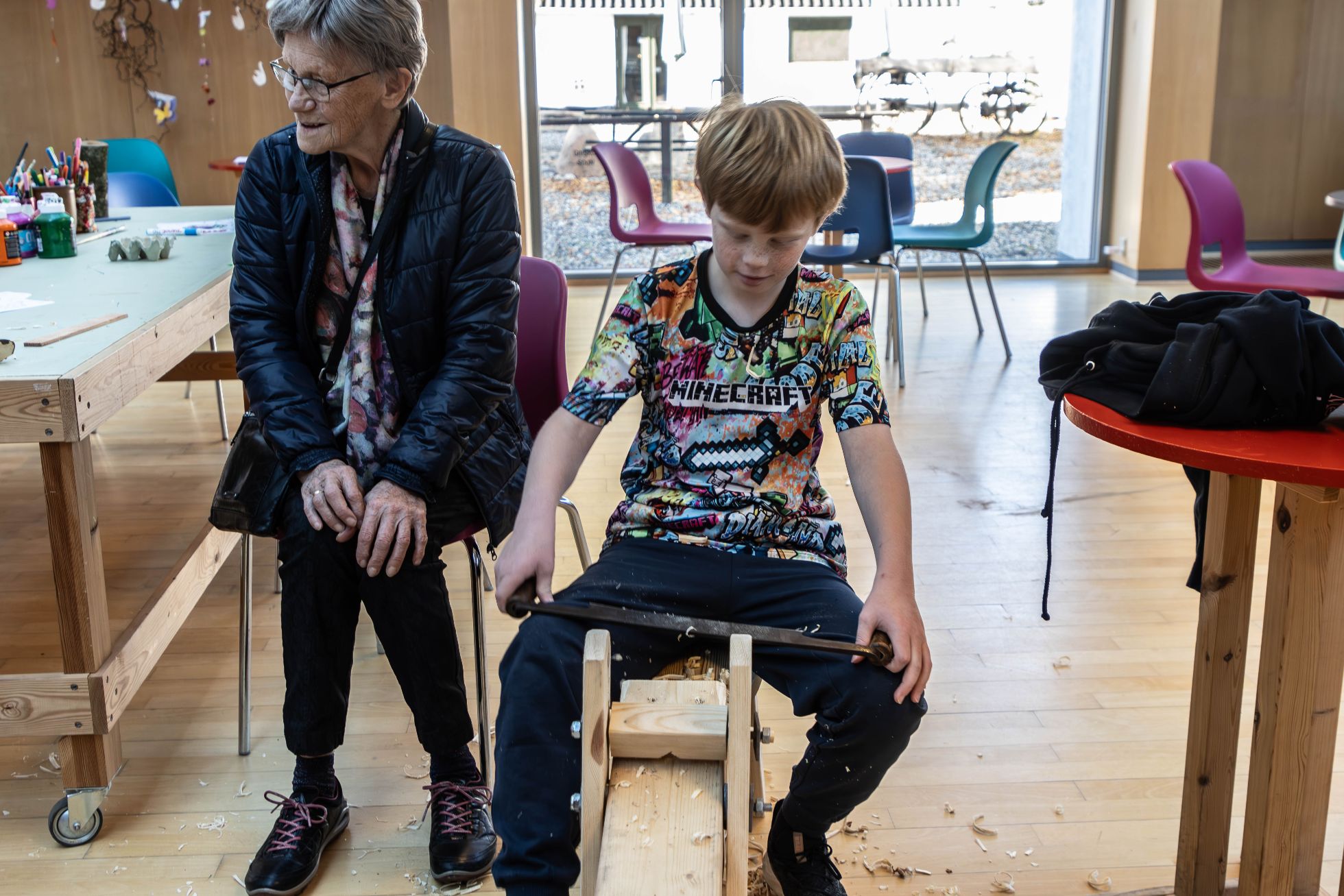 For det andet handlede det også om at tilbyde aktiviteter til børn, unge og deres medbragte forældre/bedsteforældre i efterårsferien. Børnene kunne således udtrykke og virkeliggøre deres måske skjulte håndværkertalenter på både tømrer- og snedkerværkstedet – og var man til de mere Jørgen Clevinagtige aktiviteter, var det også muligt at klippe flagermus ud i papir/karton.