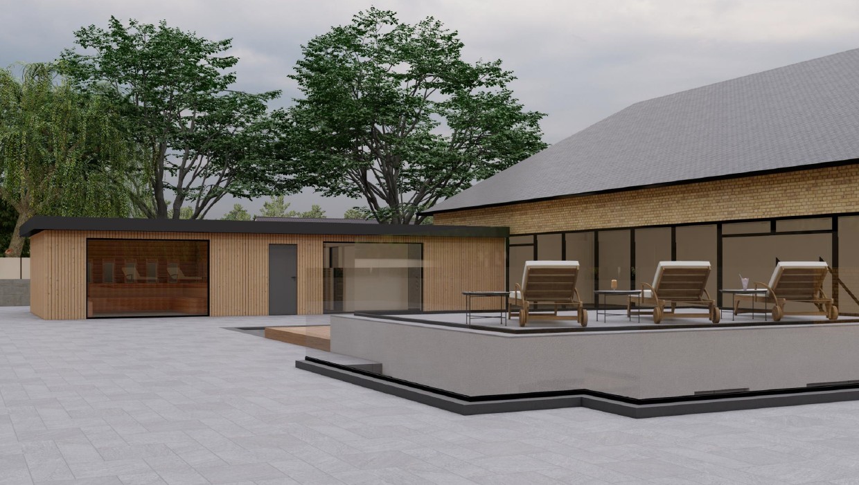 Som sidste del i tretrinsraketten i projektet er det en ambition og stor drøm at etablere en udendørs spa, så Center Thyregod både kan tilbyde det kolde gys og den varme luksus.