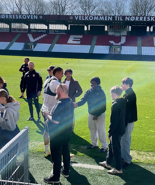 Største oplevelse for eleverne var nu alligevel, at spillerne - i følge Henrik - i anledningen af skolens besøg trænede på stadion i stedet for VB Parken.