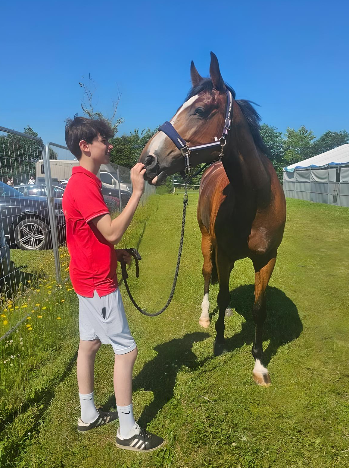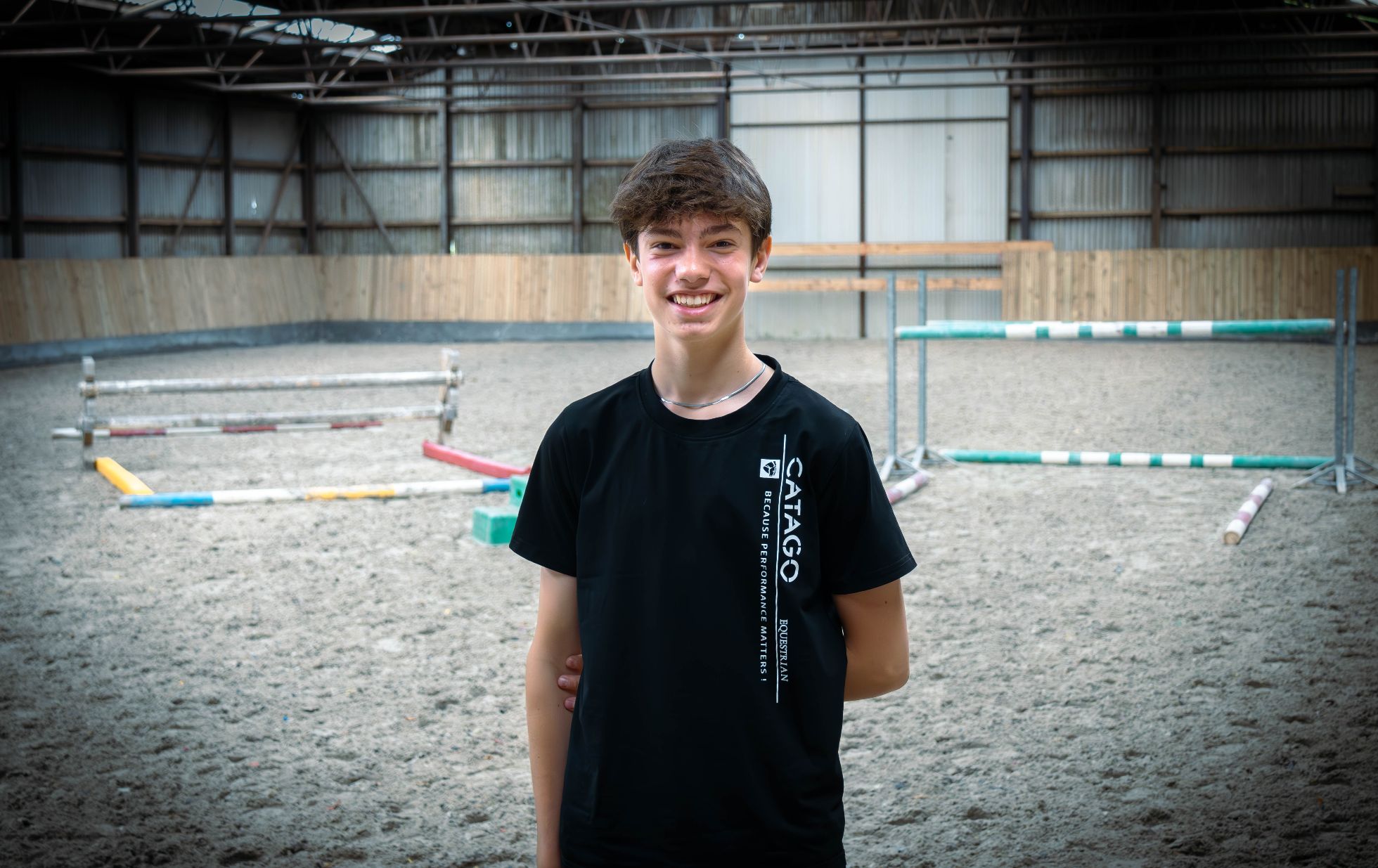 14-årige Xander Reinholt Fredslund er netop hjemvendt fra de nordiske mesterskaber i springning, hvor han var med på det children-landshold, der vandt bronze i holdkampen, og hvor Xander var vanvittig tæt på også at hente bronze i den individuelle klasse.