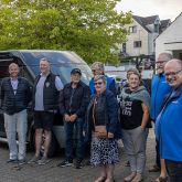 Fredag aften var medlemmer fra Rotary og Lions samlet på Torvet i Give for at ønske de tre chauffører god tur østpå. Til stede var også Åse Grønbæk der er formand i Hoven Energi- og udviklingsfond, hvorfra man har hentet 45.000 kroner.