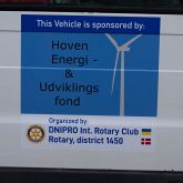 De tre biler er udstyret med logoer for Lions, Rotary og Hoven Energi- og udviklingsfond, men her skal vi lige pointere, at det er de internationale foreninger, der nævnes.