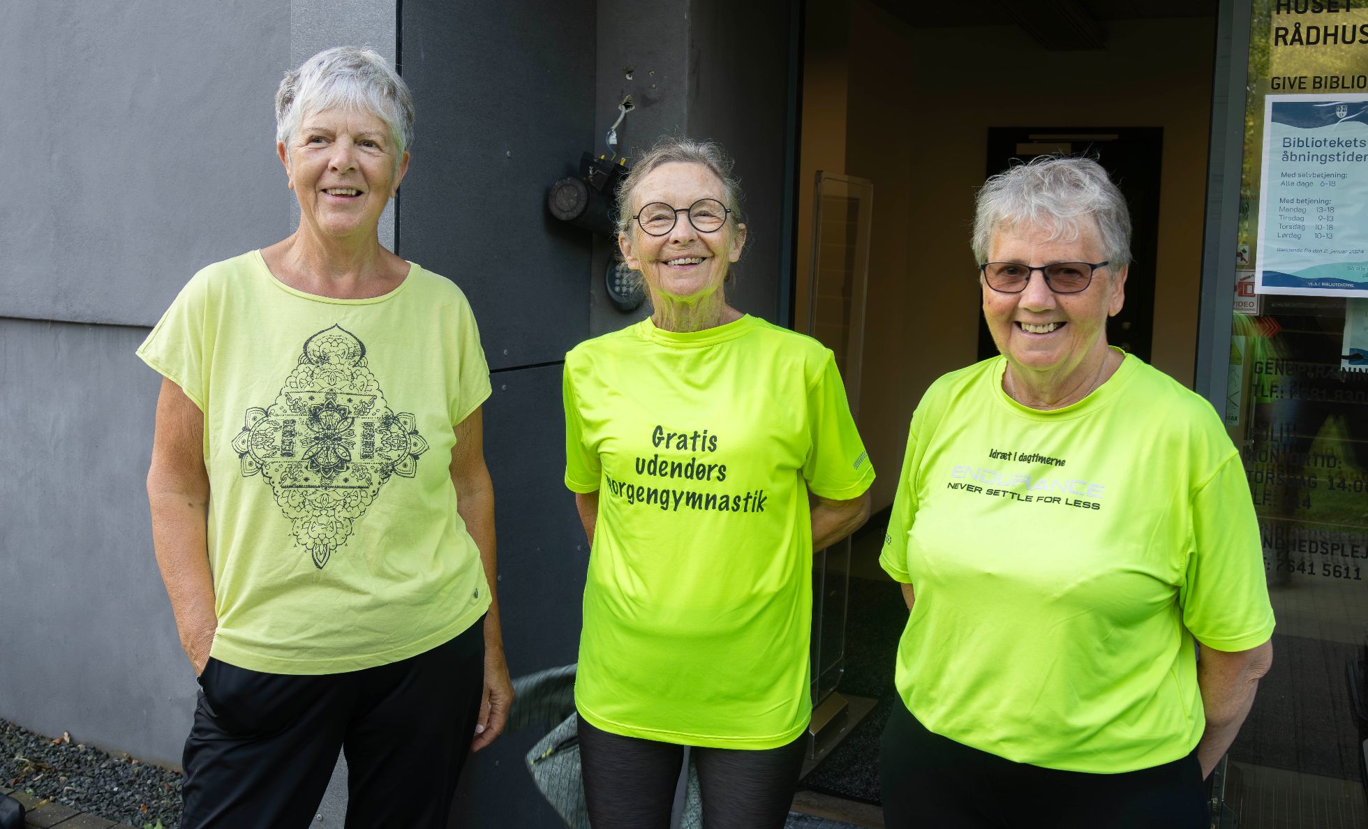 Det er fra venstre Ingeborg Noe, Mette Rye og Gerda Virkelyst, der står som instruktører ved Sommergymnastikken ved Huset. Foto: Jim Hoff