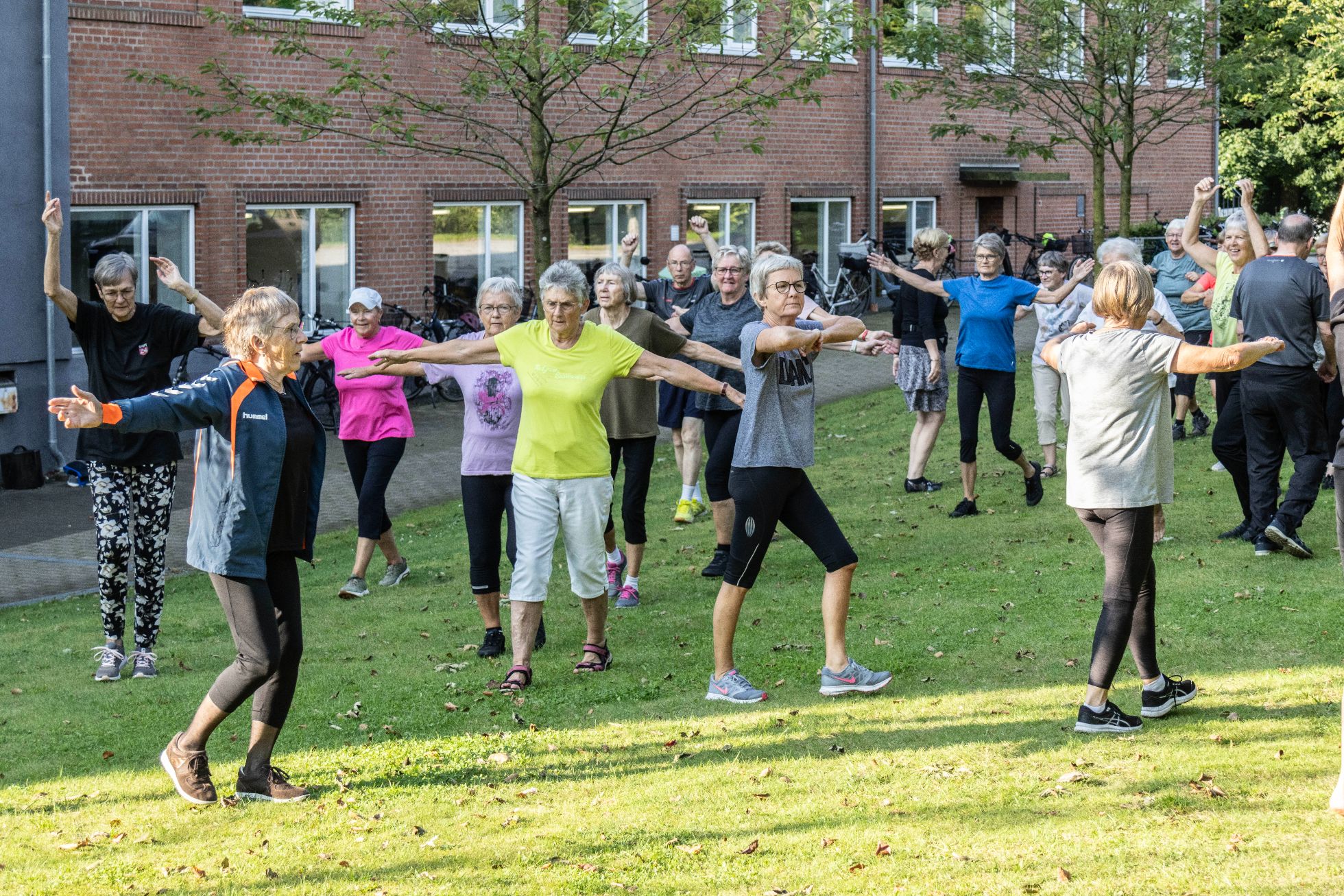 Der møder lige fra 25 til 50 gymnastik- og motionsglade folk frem til eventen torsdag klokken 9.00, og så bliver der ellers lavet en masse god gymnastik på plænen i de efterfølgende 45 minutter.