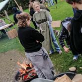 DET GODE SKOLELIV: Hvis du i uge 41 har kørt forbi Karlskov Friskole og omkringliggende arealer, har du sikkert kunne undre dig over flere ting: Hvorfor ryger det over fra skolen, hvem er det der er oppe at slå med sværd, og hvad er det med den der høje meget mystiske musik – og det er det speakeren fra Power-reklamerne på TV, der er flyttet ind, og som står og råber sine produkter ud over egnen? Og hvorfor render børnene rundt i gammel slidt tøj?