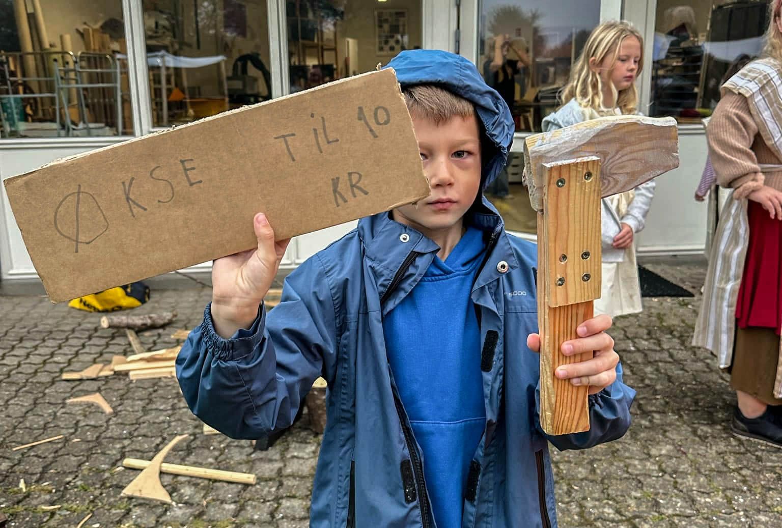 Så er der tilbud på hjemmelavede økser. Foto: Karlskov Friskole