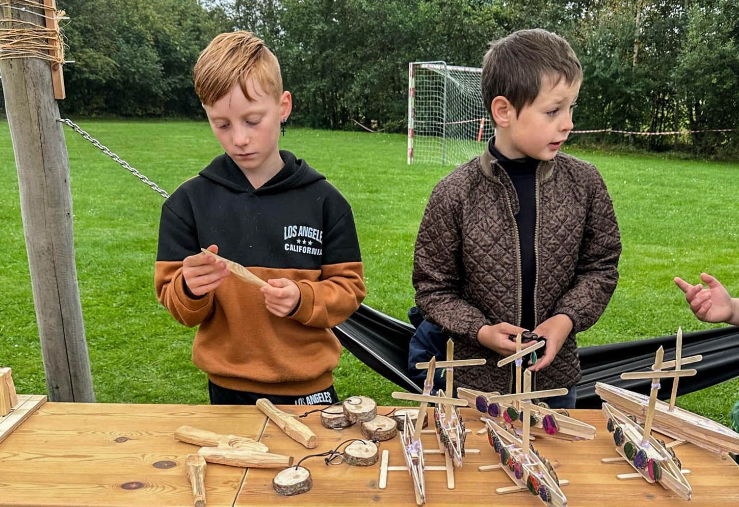- På dagen blev der solgt ud af de fine ting børnene, havde produceret i løbet af ugen, og der blev underholdt af sælgere i boderne, hvor sælgerne lavede opråb og salgstaler. Der blev også sunget og danset i ren vikingestil. Mange forældre, bedsteforældre, tanter og onkler havde fundet vejen forbi trods det lidt kedelige vejr. Der var flot opbakning og støtte til boderne, der alle kunne melde udsolgt klokken 11.00, fortæller Tinna Maria, der altså kan berette om en rigtig fin og vellykket emneuge.