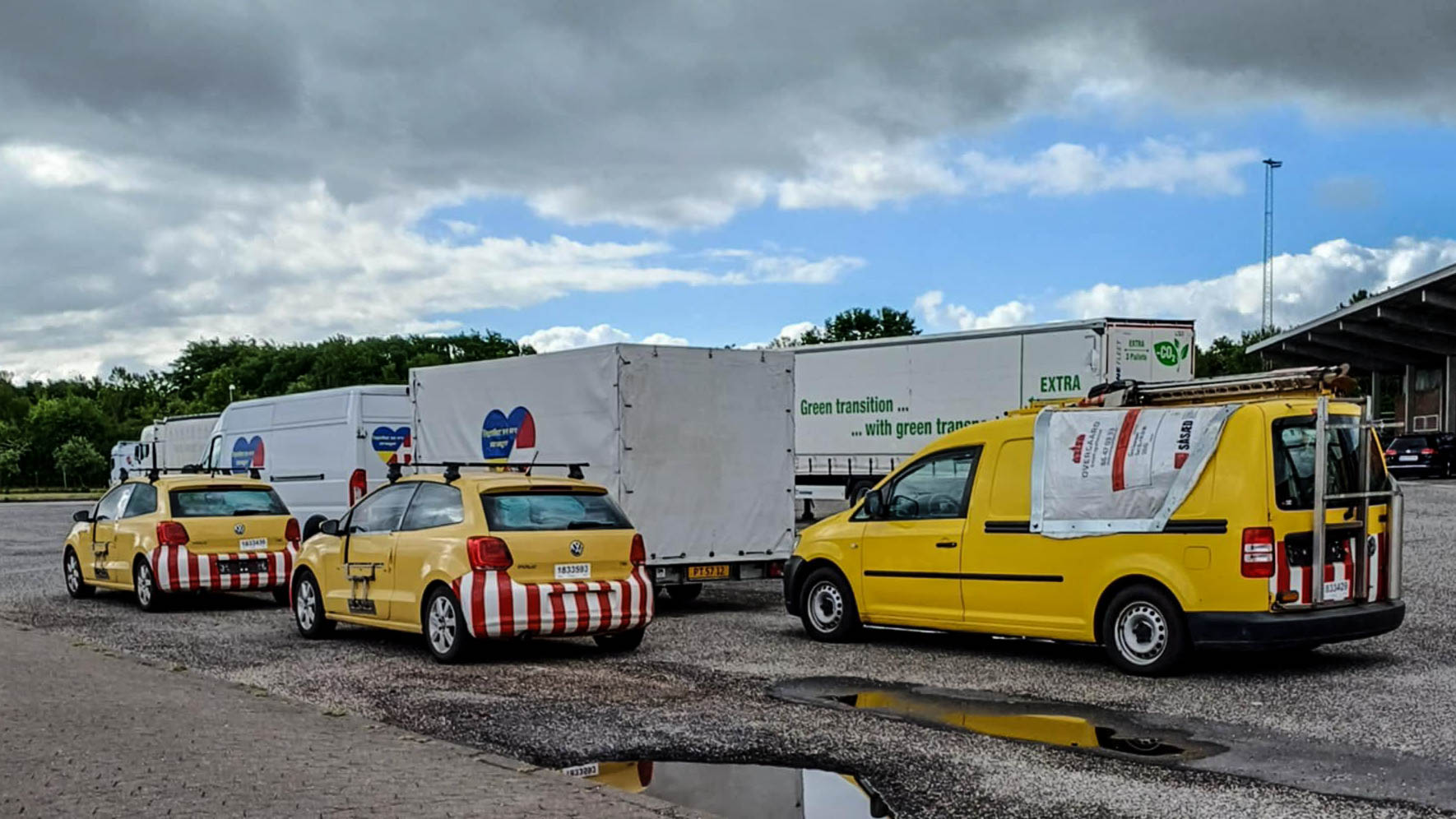 GIVE/UKRAINE: 3 biler fra Klimadatastyrelsen samt en varevogn med stor trailer bagpå fyldt med blandt andet dæk, foldemadrasser, autostole, kanyler, massevis af foldesenge, drops og kager. Læg dertil 4 køretøjer, 3 gule biler fra Klimadatastyrelsen samt en varevogn med trailer. Put så lige fire topmotiverede chauffører oveni hatten – og så har du det scenarie, der udspillede sig på Vejlevej 229 fredag aften i uge 21.