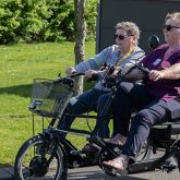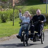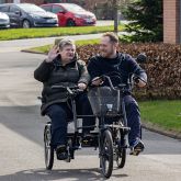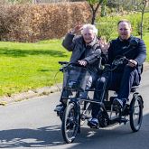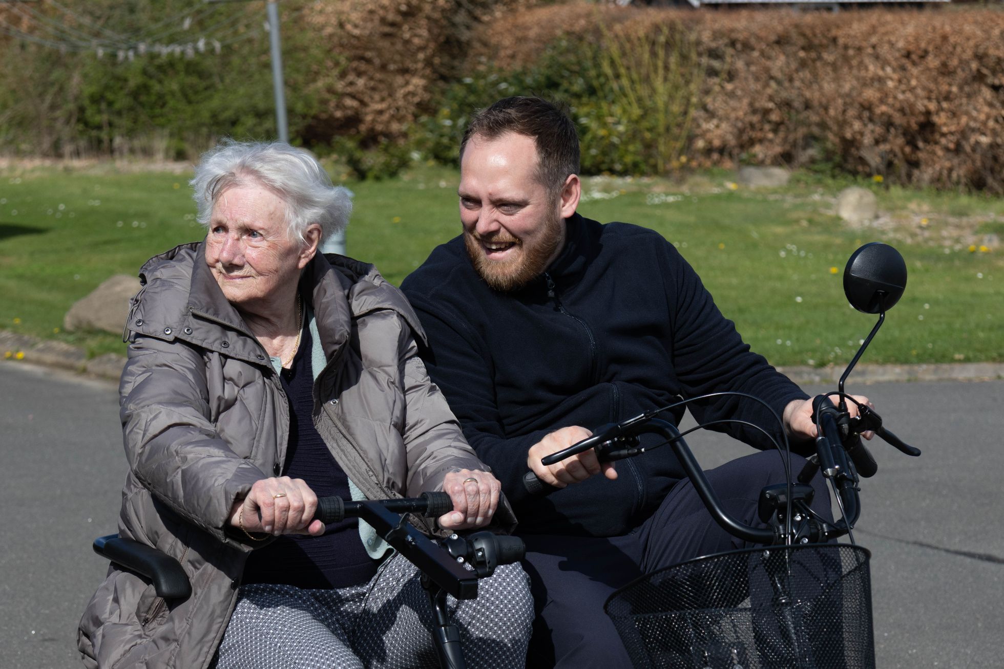 - Plejecentret havde indhentet et tilbud på en 2-personers DUO-samtalecykel med elmotor, da de havde et stort ønske om at eje en, så de kunne køre ture rundt i området med beboerne. Det skaber stor livsglæde for beboerne at komme ud og se, hvad der sker udenfor huset og få vind i håret og røde kinder.