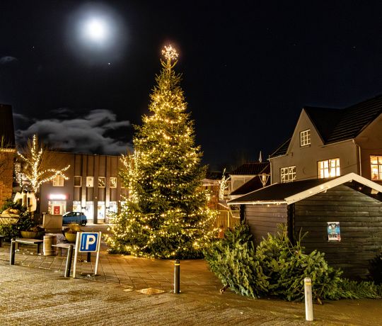 Juletræsfest i Grønbjerg-Langelund med juleboder, nisseboder og nisseværksted
