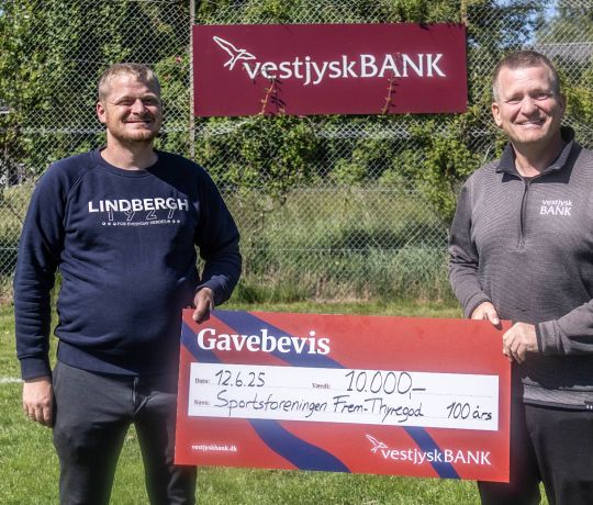 100 hundredkronesedler fra Den Jyske Sparekasses Fond til FREM Thyregods 100-års jubilæum