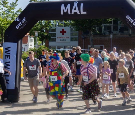 Masser af røde næser i midtbyen: Dette års udgave af Klovneløbet i Give sad lige i skabet