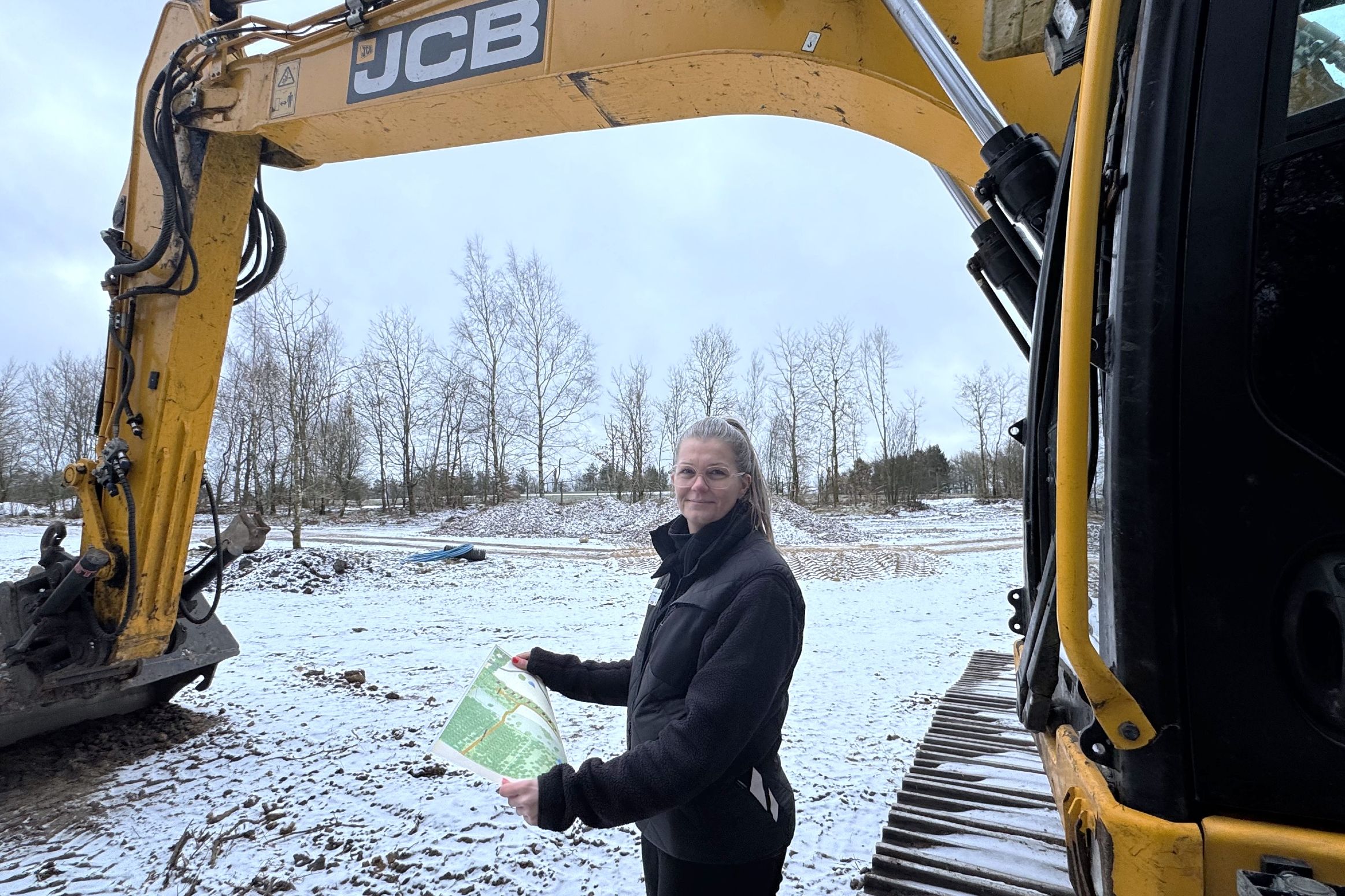 Driftschef i Givskud Zoo - Zootopia, Sabina Holm Poulsen, i det 70.000 kvadratmeter store område Givskud Zoo - Safari Camp, som vil stå klar til gæster fra 1. maj. Foto: Givskud Zoo
