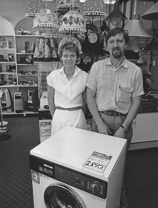 I 1984 rykkede Ellen og Børge ind i butikken i Vestergade, da de byttede domicil med Henning Askjær, der drev en maskin- og traktorforretning i Vestergade. Han rykkede ud på Hjortsvangen i Give Els lokaler. Foto venligst udlånt af Børge Westergaard.