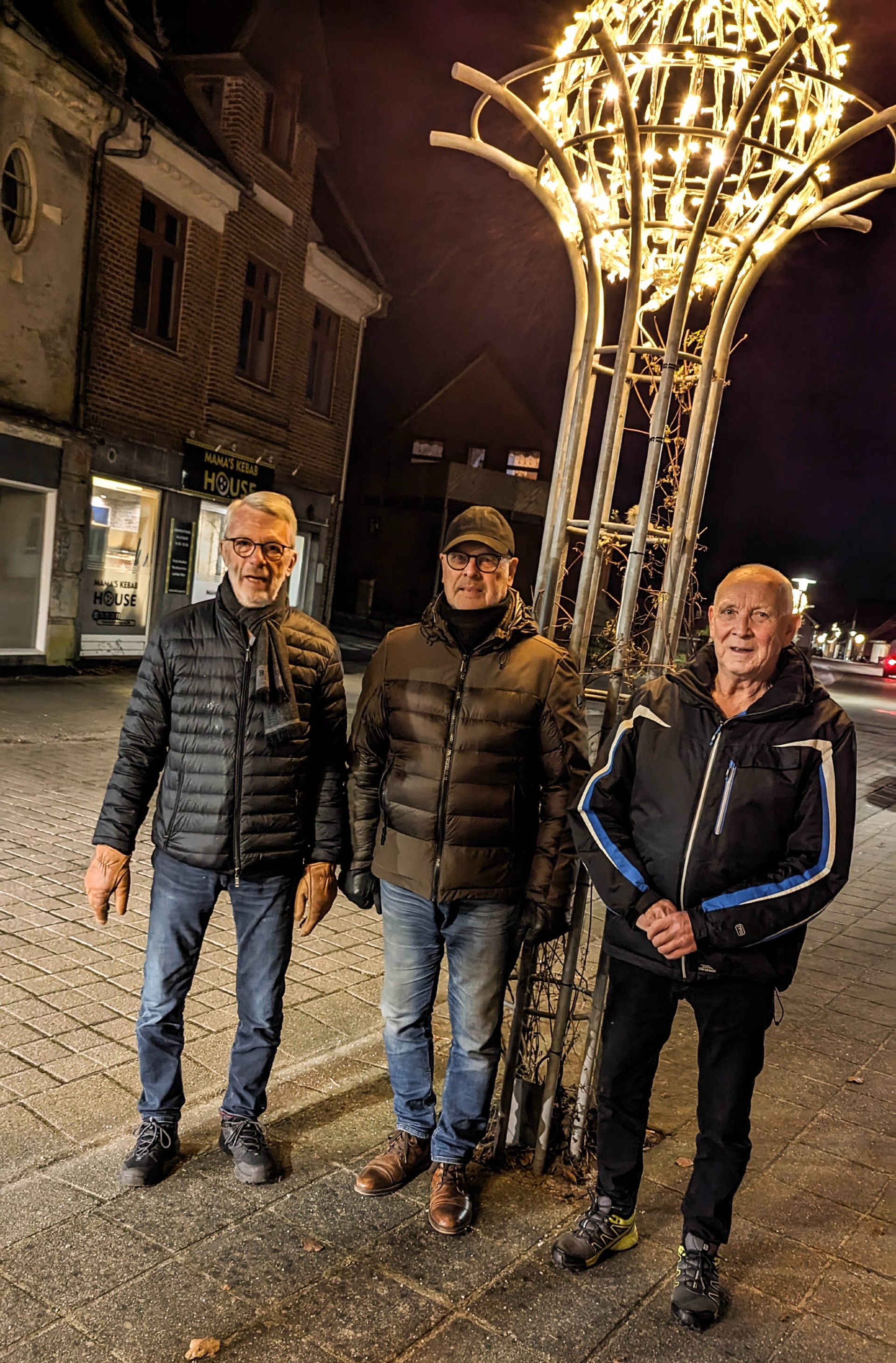 Et eksklusivt udvalg af brugerudvalget er her fanget ved den nye julebelysning. Det er fra venstre Hans Viggo Hansen, Knud Buch og Bent Nielsen . Foto: Jens Ørnsholt.