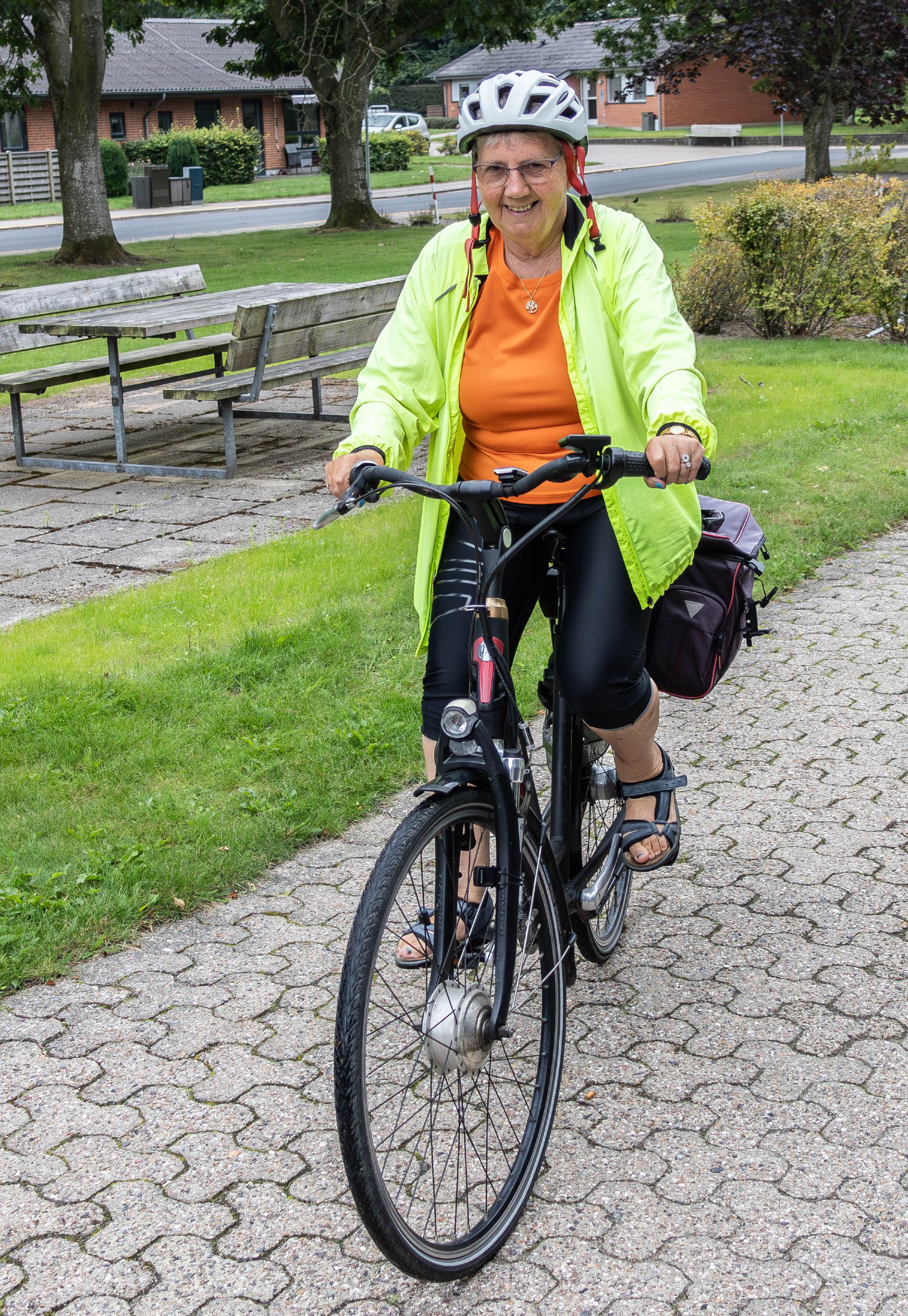 Gerds Virkelyst er en ivrig og flittig motionscyklist, de er i gang med at cykle Jylland og Fyn tynd. Hun er også medlem af Mandagscykelklubben i Give. Foto: Jim Hoff
