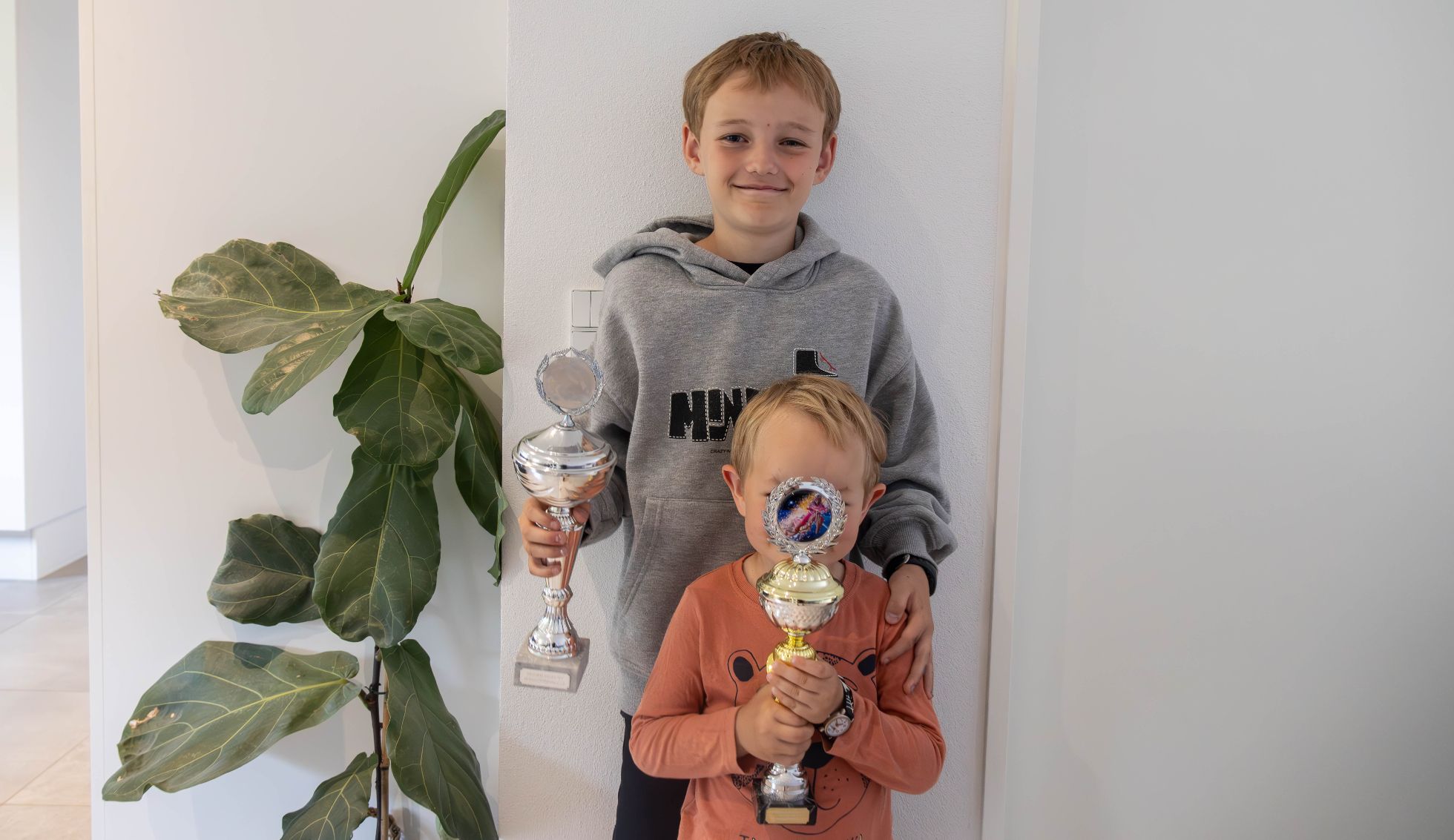 -Jeg har faktisk to speedwaycykler, så jeg har en i reserve, hvis den jeg kører på, går i stykker, fortæller Louis, mens han sammen med lillebror stolt liner de to pokaler op bordet.