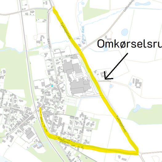 Der anbefales omkørsel via Bækvej, Tykhøjetvej og Bakkevej. Vær også opmærksom på, at busruten omlægges.
