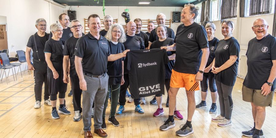 AL Sydbank i gavehumør: Samtlige 140 medlemmer af Give Atlet Klub har fået nye t-shirts