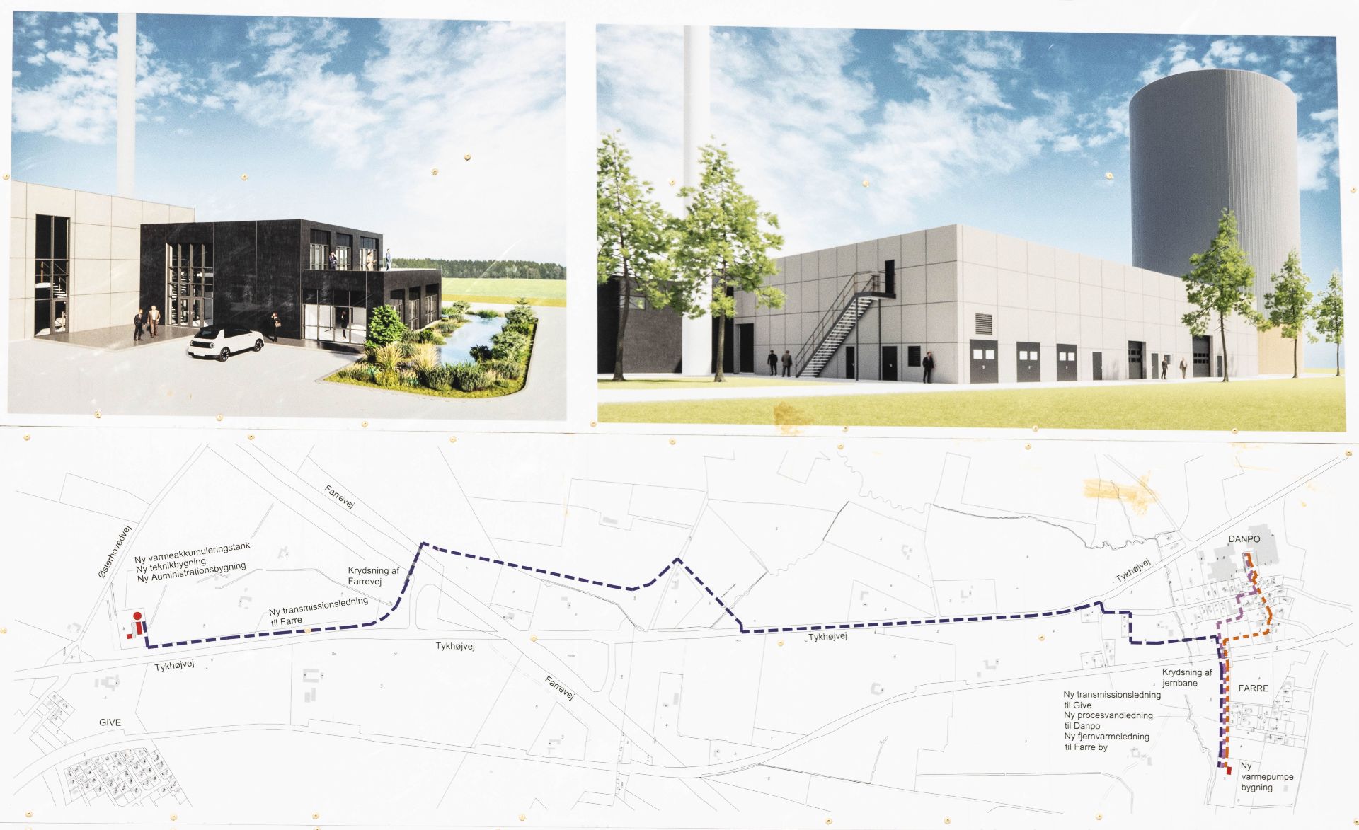 Kort fortalt handler projektet om, at Danpo i Farre skal sende overskudsvarme til vandakkumuleringstanken på fjernvarmen i Give, hvor overskudsvarmen bliver en del af de energikilder, der fremover skal være med til at forsyne Give og omegn med varmt vand.