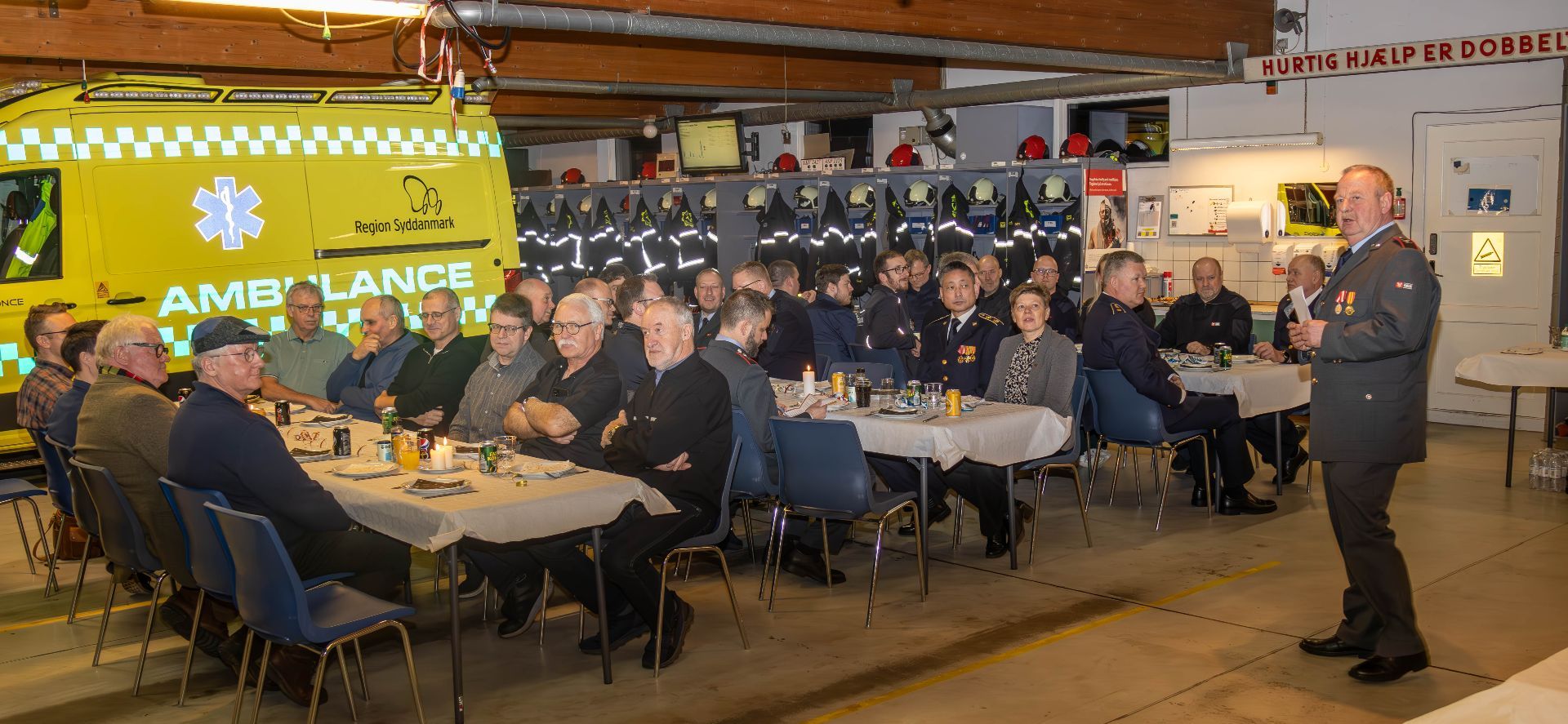 Som brandstationsleder er det Erling, der hvert år byder velkommen til nytårsparolen, hvor han også fortæller om året, der gik. Foto: Jim Hoff