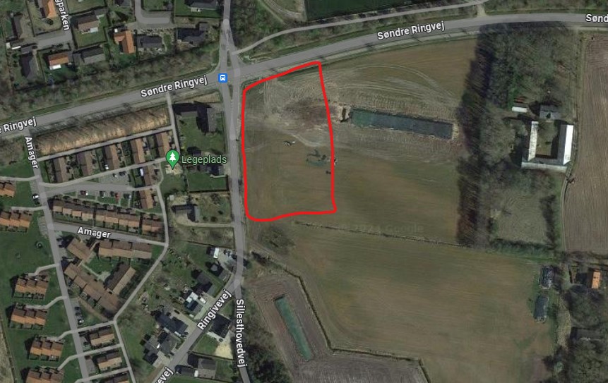 Det nye boligprojekt ligger på hjørnet af Ringivevej og Sdr. Ringvej og består af 6 lejeboliger. Foto: Google Maps