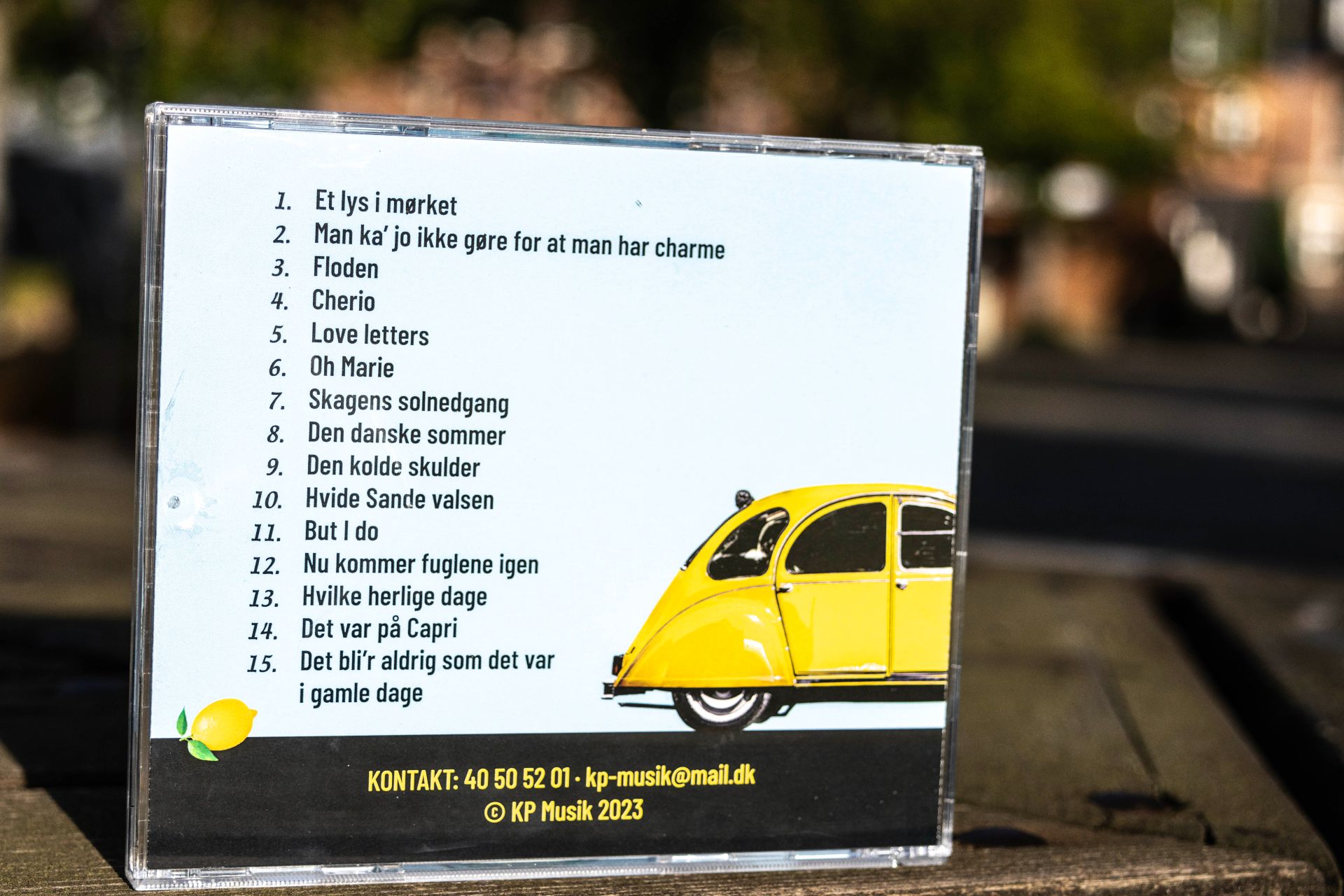 Coveret på cd’en kan ikke blive mere Give – det er nemlig Solhjulet, der pryder coveret sammen med en gul 2 CV – og så er vi ligesom kørende. Det er Qvist Grafisk i Give, der har lavet coveret – så også her er det 100 procent lokalt.