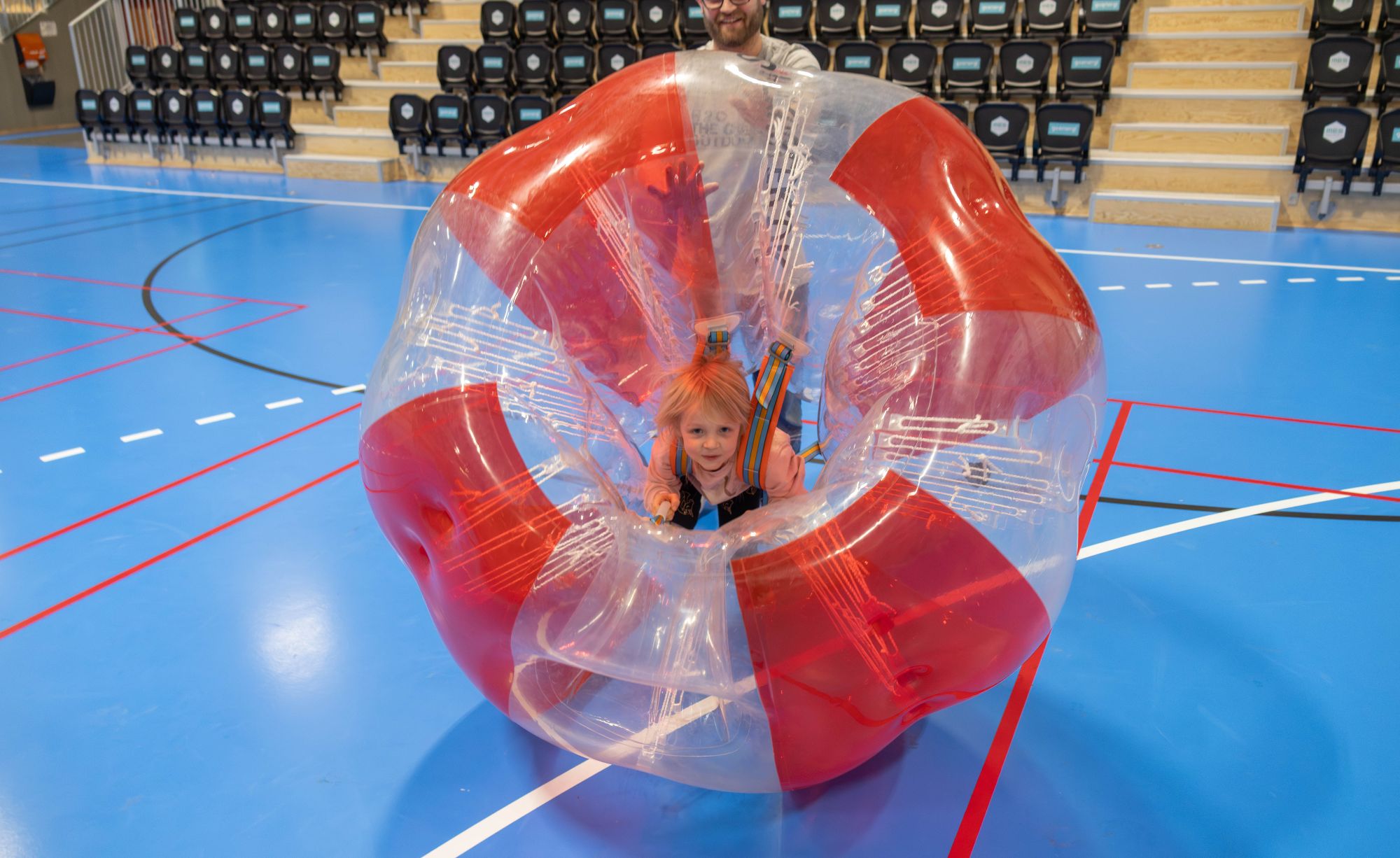 Bumperball var en af de mange sjove aktiviteter, børnene kunne kaste sig over under Åben Hal-dagene. Foto: Jim Hoff