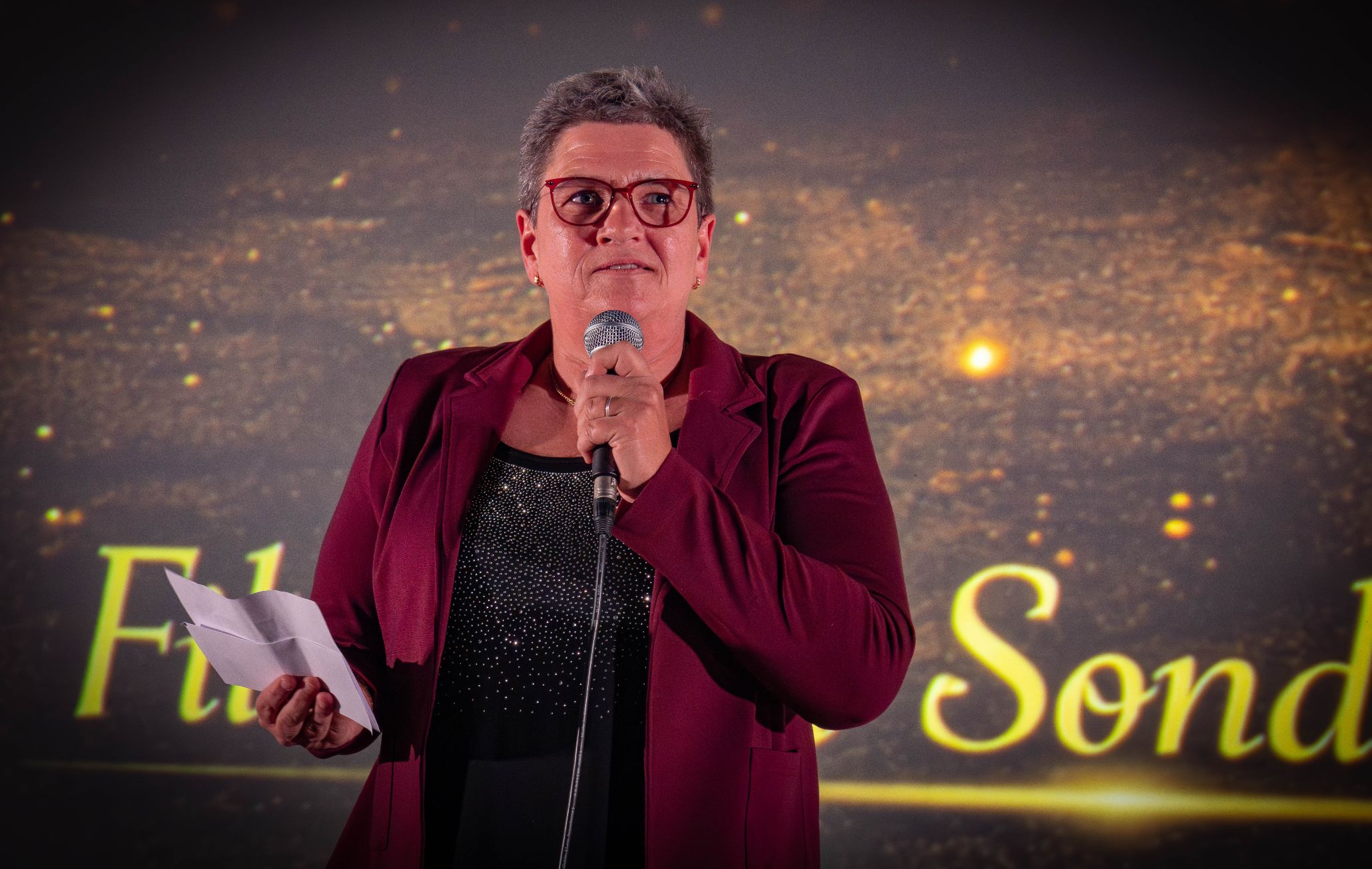 Efter denne introduktion var det afdelingsleder Connie Nielsen, der fik mikrofonen, hvor hun indledningsvist bød den store flok forældre velkommen til filmgallaften.