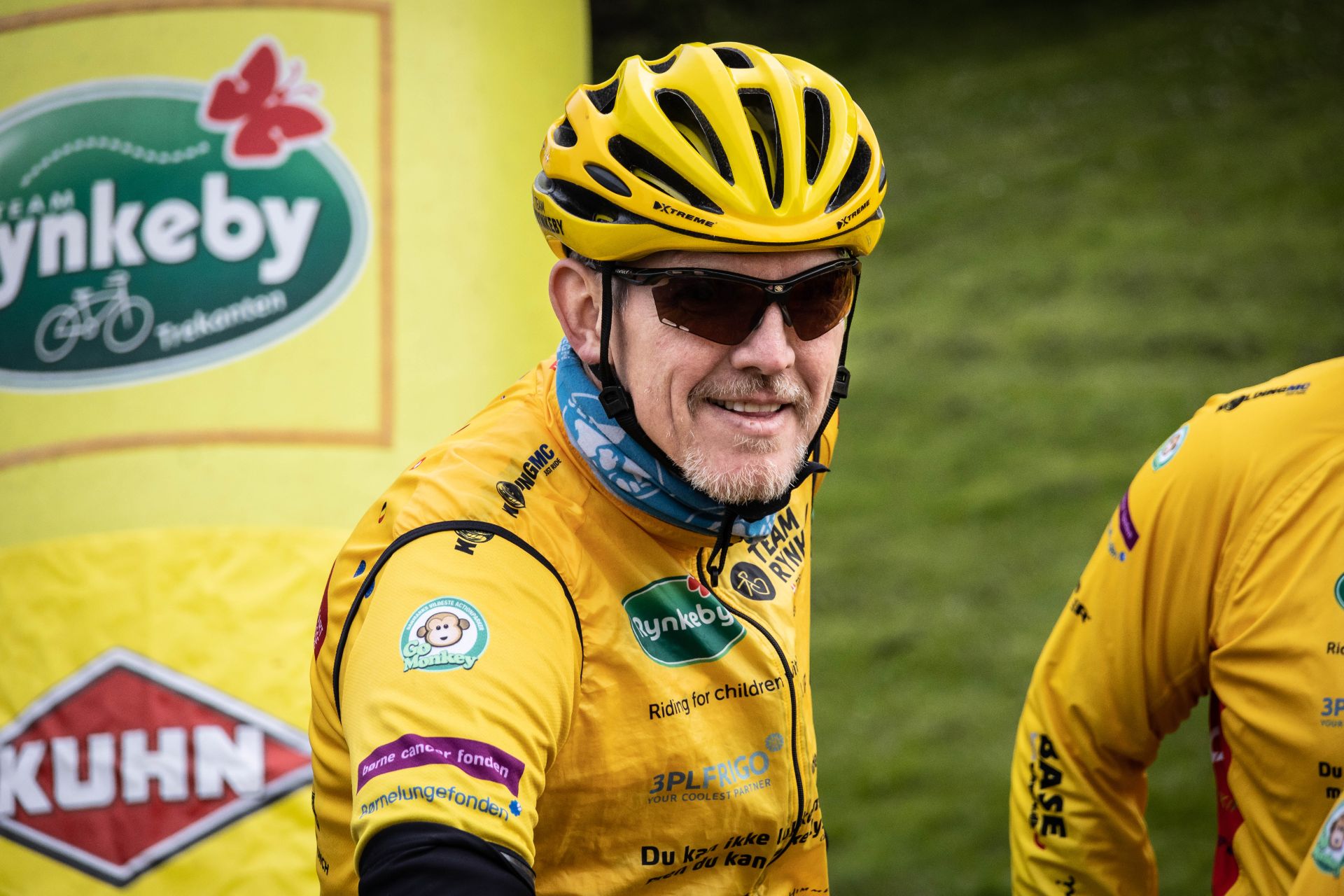 En lørdag formiddag i maj kunne man næsten ikke se Ikærhallen for bare morgenfriske gulklædte cyklister. Flere forbipasserende bilister fik uden tvivl associationer til Tour de France, men dagens cykelflok er så meget mere end op- og nedture i Alperne. Det handler nemlig om velgørenhed, når de gæve gule guttermænd- og kvinder fra Team Rynkeby tramper i pedalerne. Denne dag var der træningstur med start i Give med lokale Torben Nielsen som vært.