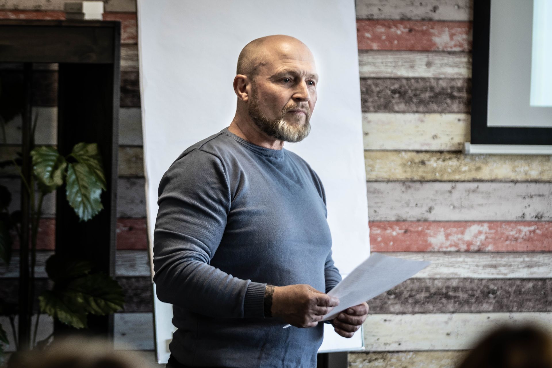 Frank Bondo startede sit foredrag med at læse et brev op fra en ung dreng, der fortæller om sin problematiske opvækst i en dysfunktionel familie. Gæt selv, hvem den dreng er. Foto: Jim Hoff