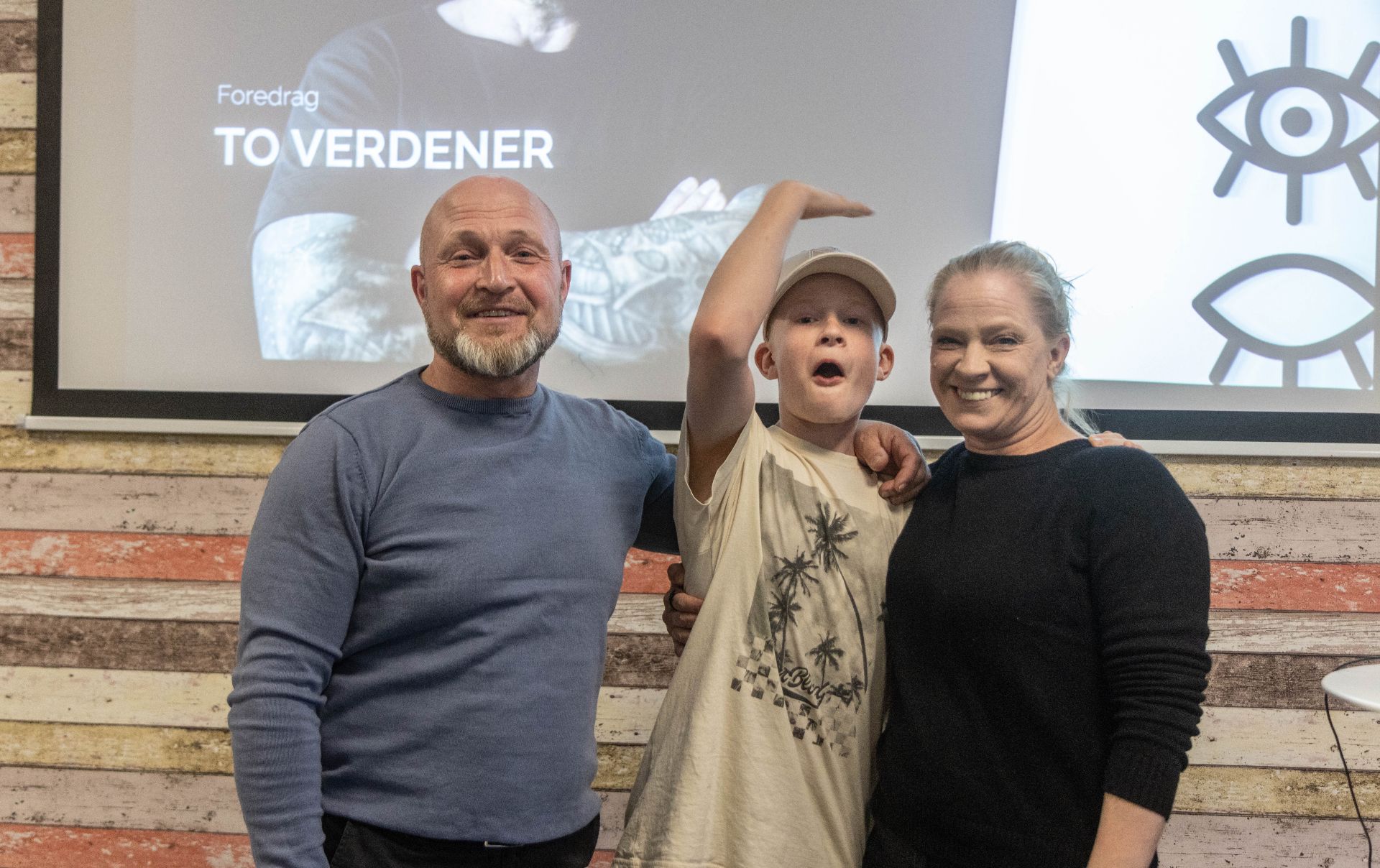 Frank Bondo sammen med de to allerstørste gaver i hans liv: Hans kone Anne Louise og sønnike, 13-årige Elias. Foto: Jim Hoff