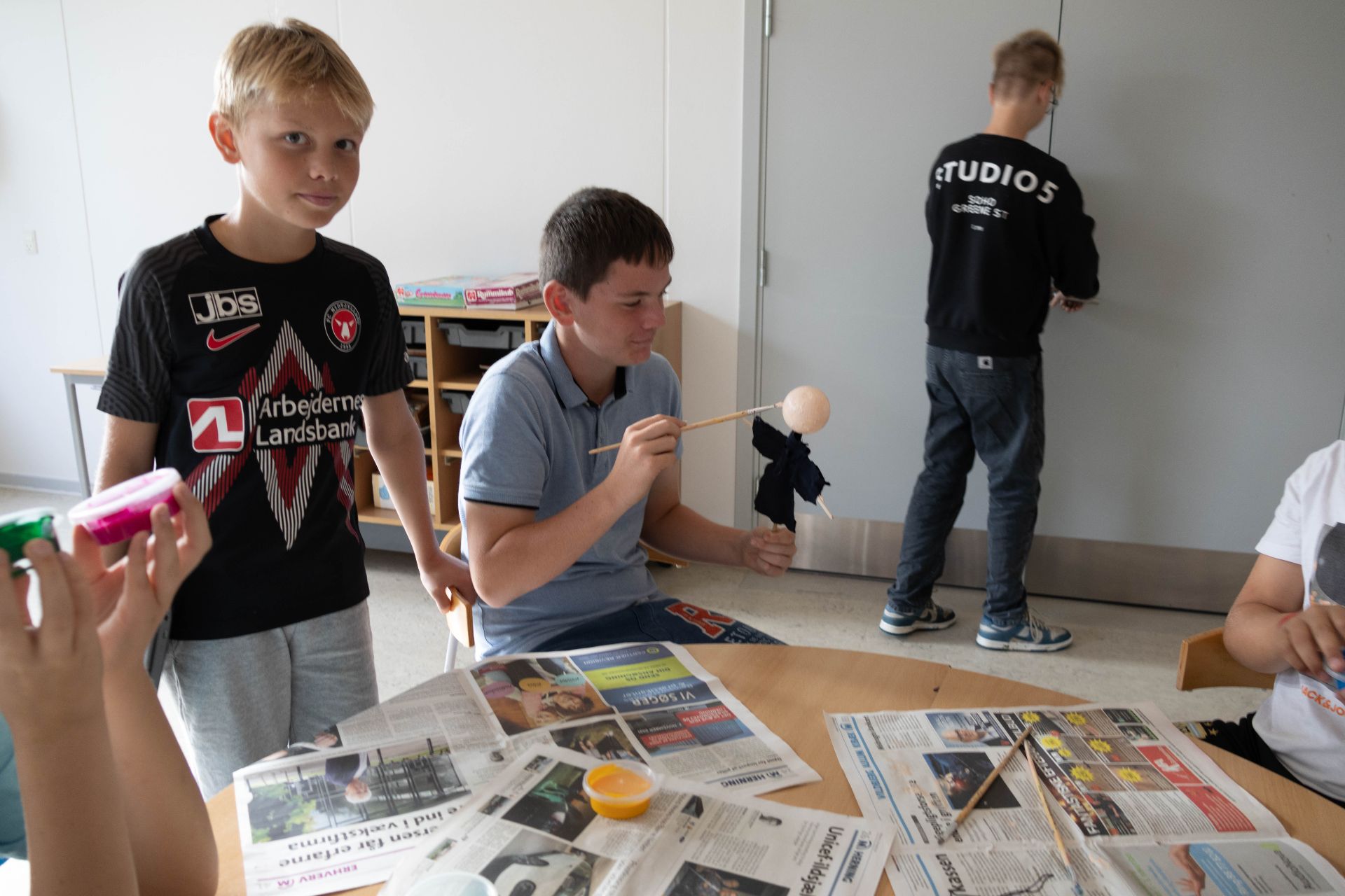 Eleverne i 6. årgang lavede Coraline-dukker i forbindelse med en bog, de havde læst. Selv knægtene foldede deres kreativitet ud. Foto: Jim Hoff