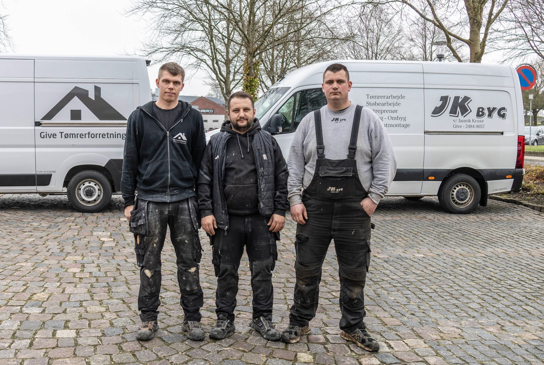 Give Tømrerforretnings ejerkreds består af lutter lokale herrer. Fra venstre er det Nick Dahl, Igor Sarajlic og Jannik Kruse. Foto: Jim Hoff