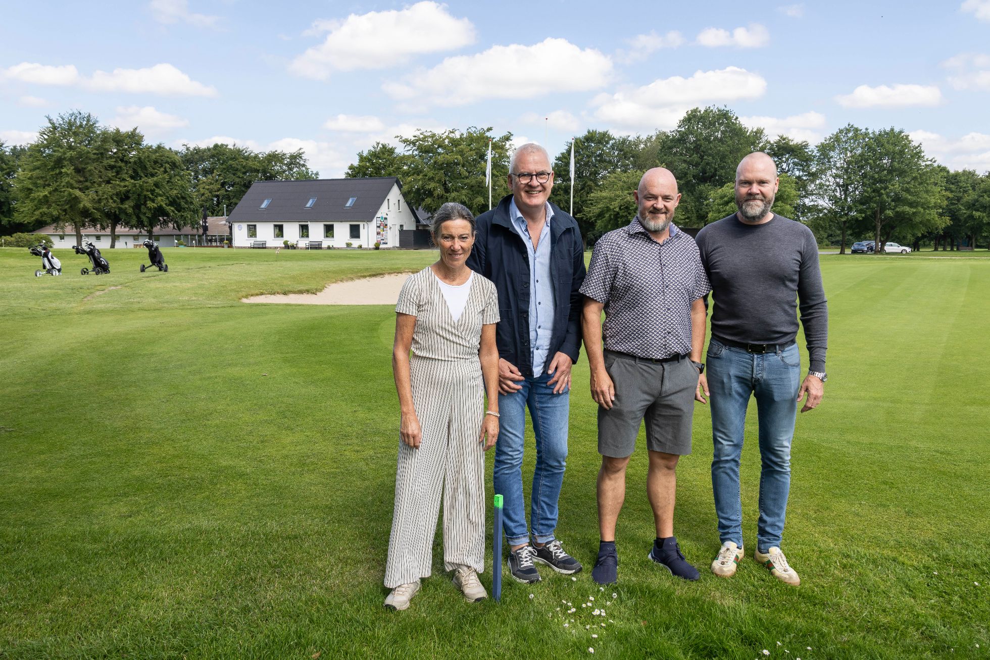 Give Golfklub og Bregnhoved Have har indledt et samarbejde, der skal komme begge parter til gode. Fra venstre er det klubsekretær Mette Foldager, Lars Utoft fra sponsorudvalget, Claus Karlskov fra bestyrelsen i golfklubben og Preben Grundtvig fra PMG Properties Aps. Foto: Jim Hoff