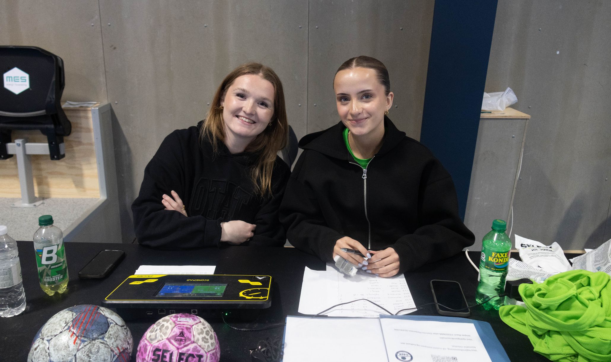 Mange af klubbens spillere tog tjansen ved dommerbordene rundt omkring i hallerne - og det klarede de med store smil og masser af charme, som vi ser her. Foto: Jim Hoff