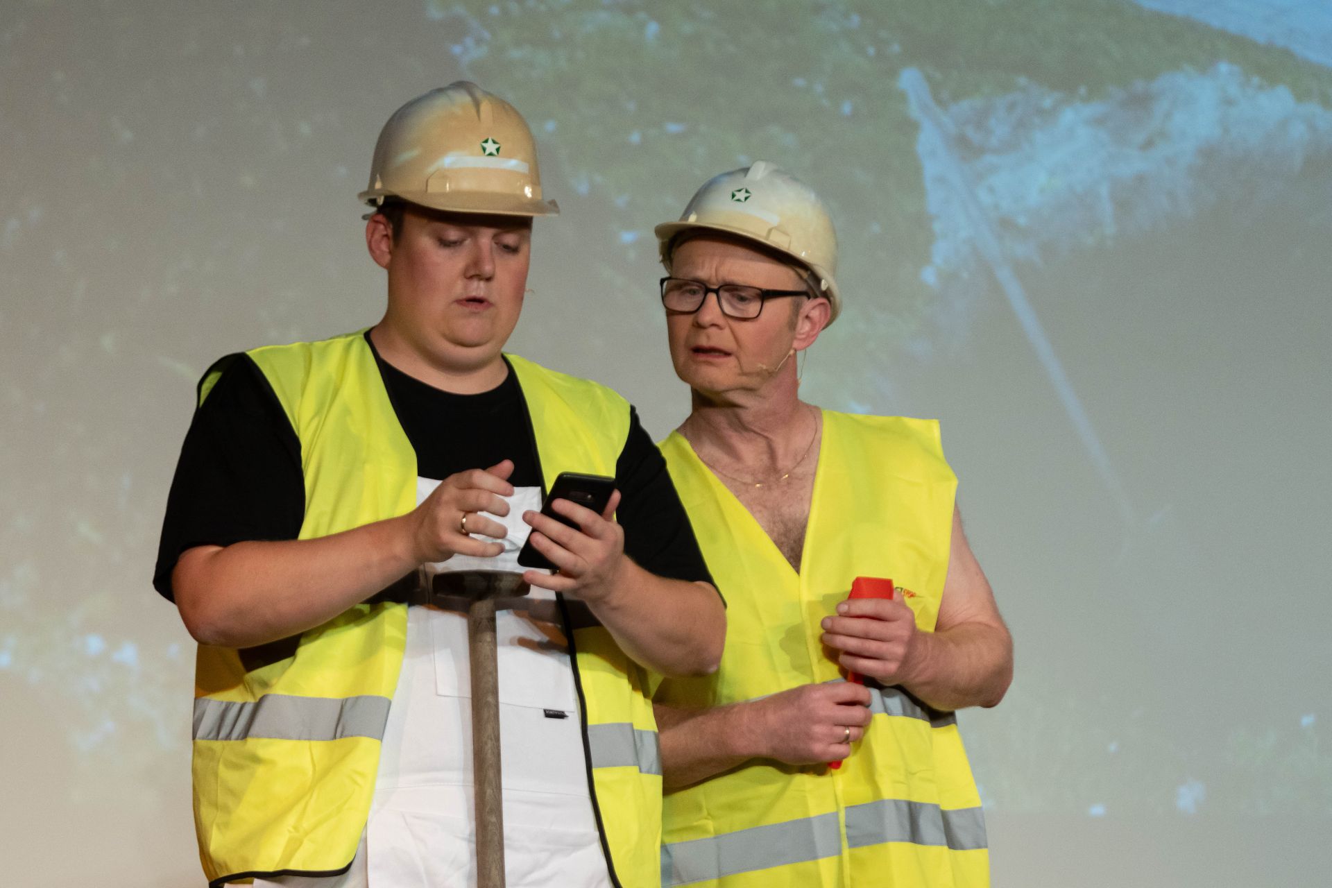 Og det gjorde de indlagte musikklip, der alle relaterede til de respektive sketches og videoklip, også. Selvfølgelig skulle vi høre ‘Østre Gasværk’ med Kim Larsen som oplæg til en lokal sketch om de alle fantastiske finurlige fjernvarme-finter i Thyregod.