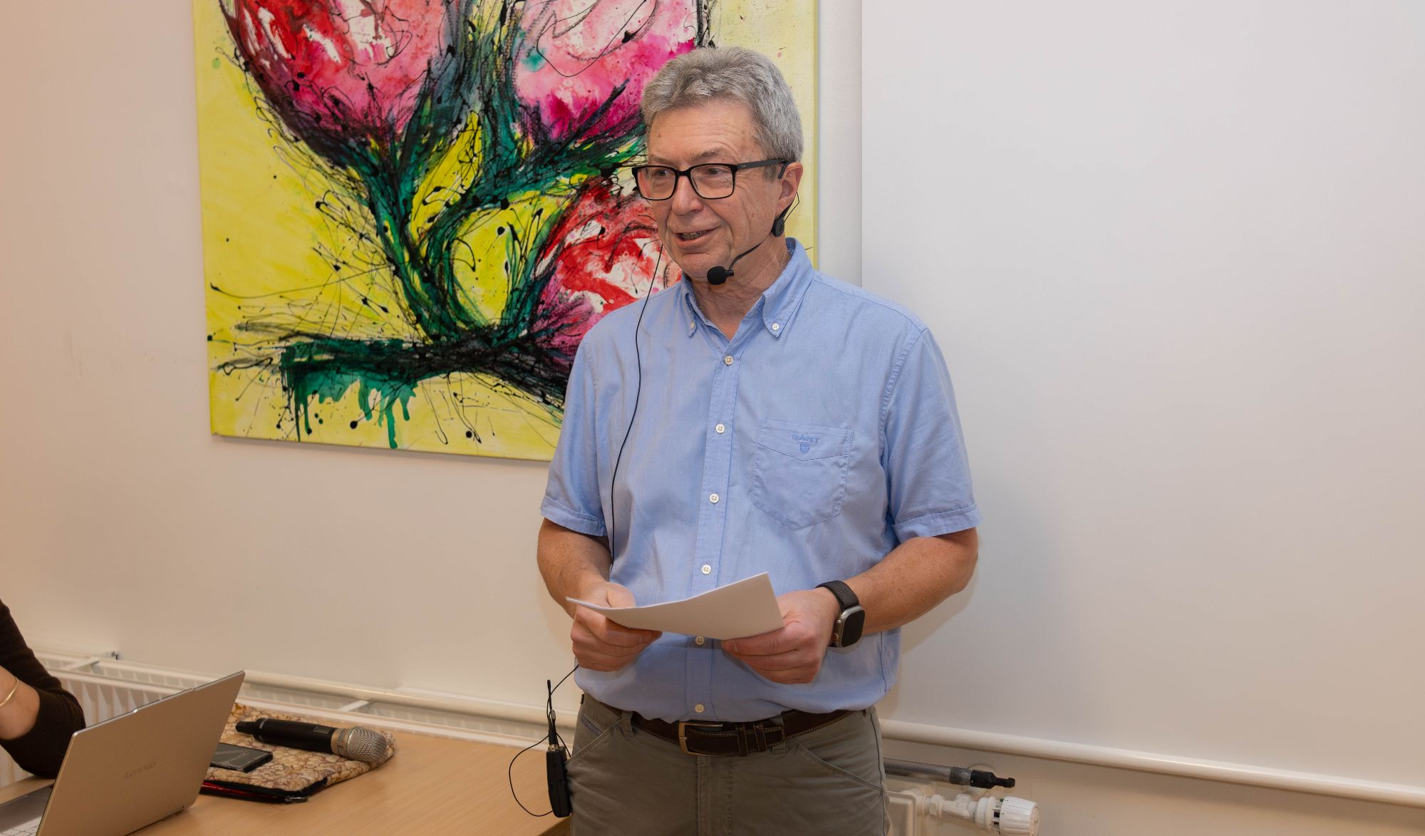 Carsten Blomberg var hentet ind udefra som neutral dirigent/ordstyrer, en opgave han løftede på fortrinlig vis og var med til at der blev holdt en sober tone i en debat, der godt kunne være blevet grim. Foto: Jim Hoff