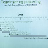 Arkitekt Chris Strunck Olesen fra arkitektfirmaet Atra fremlagde efterfølgende plantegninger over såvel udeområderne samt den indvendige opbygning, hvor han fremhævede den fine beliggenhed tæt på skovområde.