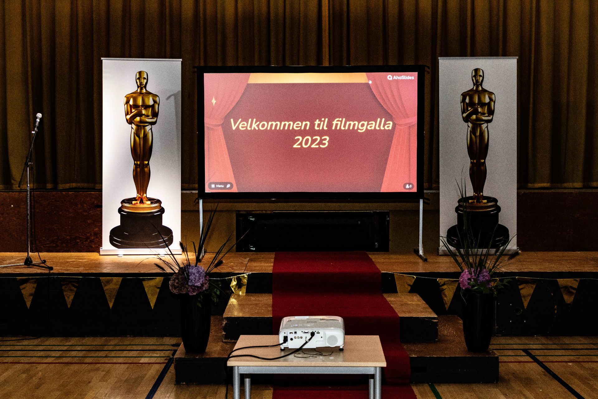 Torsdag var der store galladag, og her startede dagen med den klassiske “Hollywood-intro”, hvor der var pyntet flot og festligt op i forhal og kantine – i bedste Oscar-nomineringsstil. Den røde løber var også fremme, ikke kun fordi Vores LokalAvis kiggede forbi, men nok lige så meget for at give det hele et autentisk Hollywood-look.