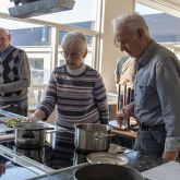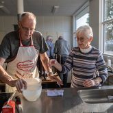 De arbejder da også på at finde et par nye friske folk, der kan løfte opgaven efter dem. Ida har været tovholder på holdet i 15 år, mens Emmy har været med i 13 år, og et par af gutterne på dagens hold har faktisk været med fra dag ét. Men ellers er der løbende udskiftning hen over årene, så alt i alt er det en stor flok lokale mænd på Give-egnen, der har nydt godt af Idas og Emmys pædagogiske evner indenfor formidling af madlavning for friske herrer, hvor de to ældste deltagere er henholdsvis 96 og 91 år.