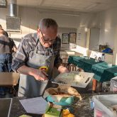 - Det handler ikke kun om at lære de her mænd at lave mad. Det handler også om at give dem et godt socialt fællesskab, hvor de med madlavningen som fælles udgangspunkt kan hygge sig og have det sjovt sammen. Og de er gode til både at lave mad og at hygge sig. De har en fantastisk humor og en god jargon, der er ingen, der kommer op at diskutere, der er en rigtig god og hyggelig tone.