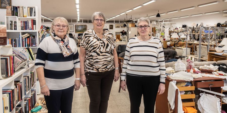 Foto: Her har vi så de tre friske damer, der har giver interview til Vores LokalAvis i anledning af Røde Kors' møbelbutiks 10-års fødselsdag: Margit Berger, Marianne Jespersen og Linda Sørensen. Foto: Jim Hoff